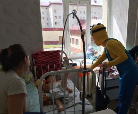 Благодаря компании каждый маленький пациент получил подарок. А для игровой комнаты медицинского учреждения были закуплены игры: «Железная дорога», «Хоккей», «Футбол», наборы «Доктор», «Кулинар», творческие комплекты для рисования, а также настольные экономические игры и другие. Праздник удался: мальчишки и девчонки активно включались в игру, участвовали в веселых миниатюрах, справлялись с конкурсными заданиями от миньонов. Тех пациентов, которые в силу своего заболевания не могли покинуть больничную койку, мультгерои навестили в палатах.