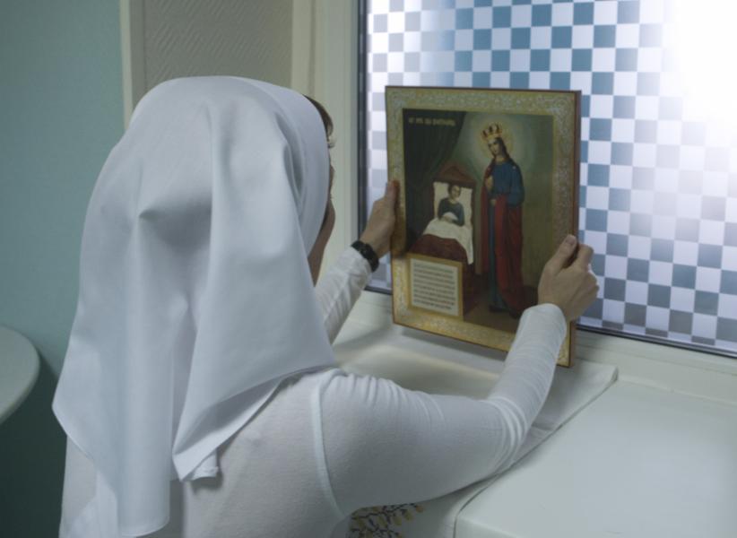 В воскресенье в травматологии дежурят шесть сестер милосердия. Разбившись на пары, расходятся по взрослым отделениям. Помогать медработникам в качестве санитарок сегодня в их задачи не входит, тут бы со «служебными» задачами справиться успеть: почитать с пациентами молитву о здравии, подготовить желающих к исповеди и причастию, раздать освященную воду и собрать от лежачих больных записки для батюшки - о чьем здоровье просить св. Луку-целителя. Но это одна сторона...