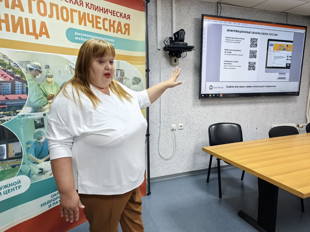 В рамках работы по профилактике дистанционных преступлений в Сургутской травмбольнице организована встреча коллектива с представителем Центробанка. Сотрудниками именно этой организации зачастую представляются мошенники в телефонных разговорах с жертвами, добиваясь доверия и создавая условия для дальнейшего манипулирования.