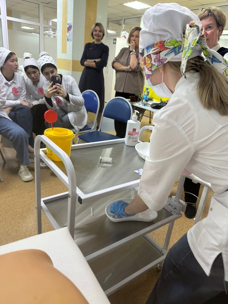 Поставить укол вслепую, объяснить диагноз молча. Необычный конкурс профессионального мастерства довелось судить главной медсестре Сургутской травмбольницы Яне Барановой в Институте управления, экономики и права. Участники - третьекурсники направления "Сестринское дело". Повод - юбилей российского среднего профессионального образования. Сегодня, 2 октября, этой системе исполнилось 85 лет.