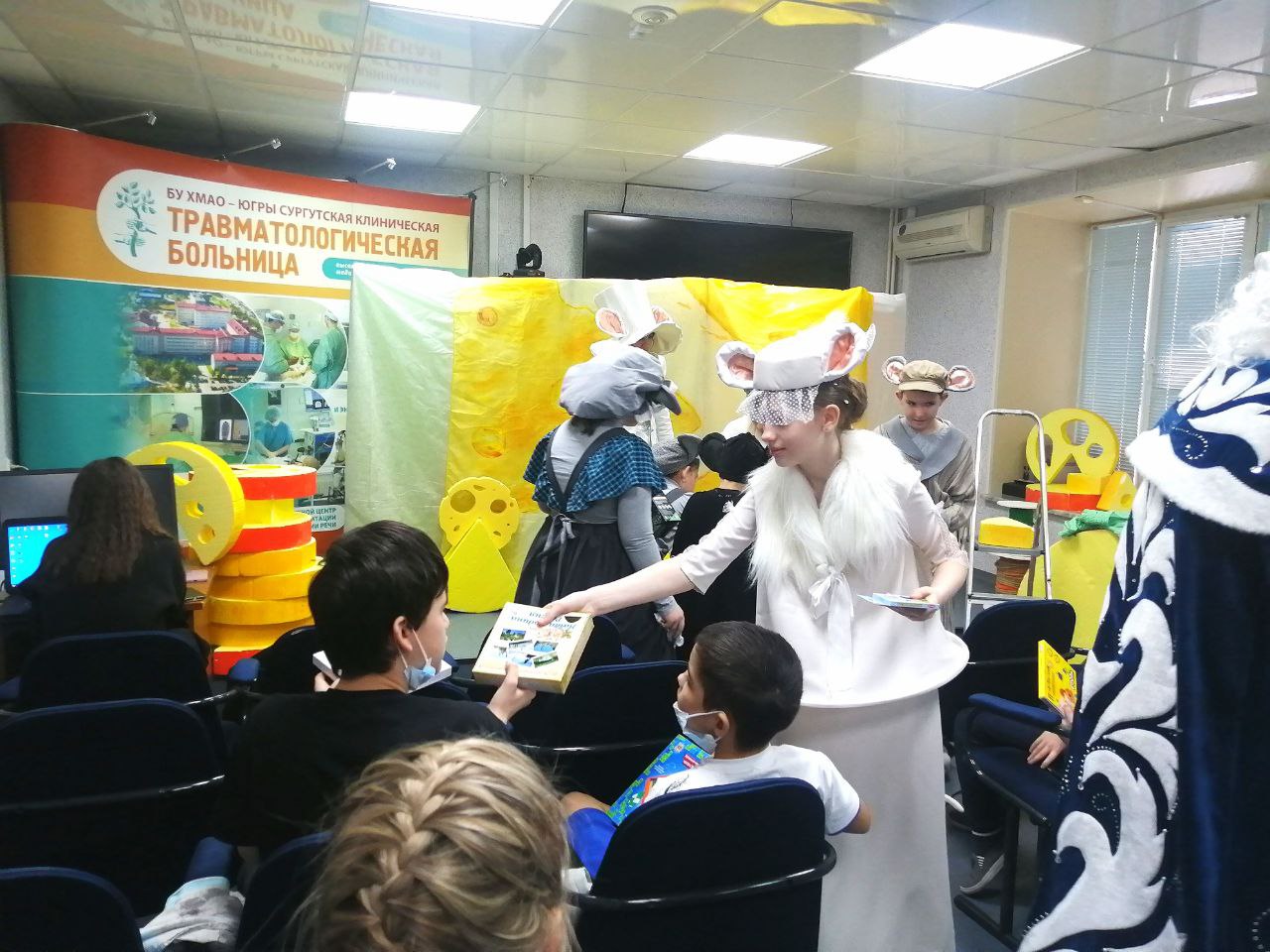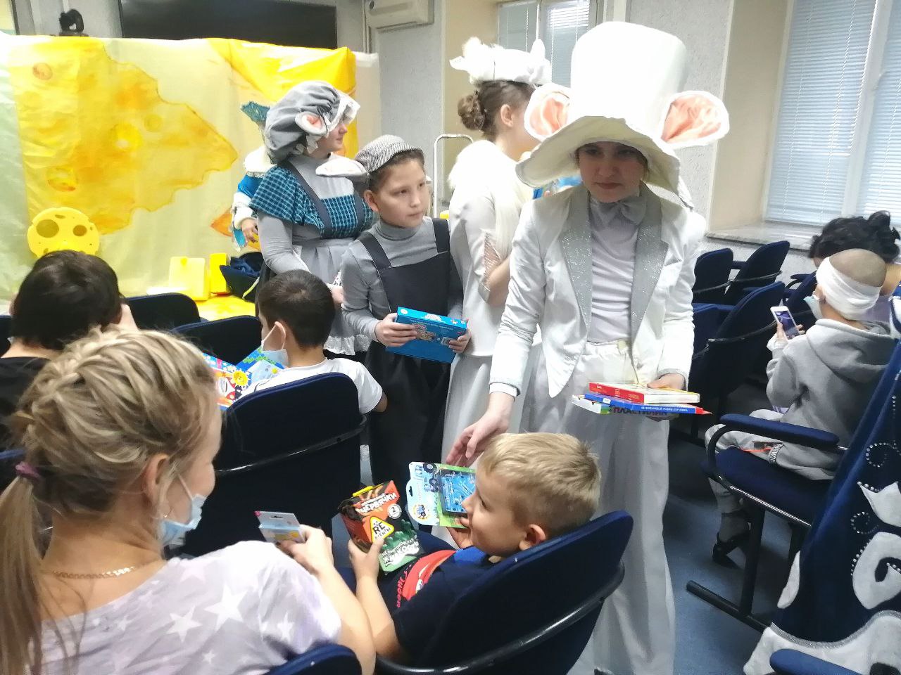 Дефицит праздничных мероприятий и положительных эмоций попавшим в нашу клинику детям решили компенсировать юные актёры из театральной студии "Шоколад". В качестве новогоднего поздравления они преподнесли своим ровесникам спектакль по мотивам сказки венгерского писателя и сценариста Дюлы Урбана "Все мыши любят сыр".