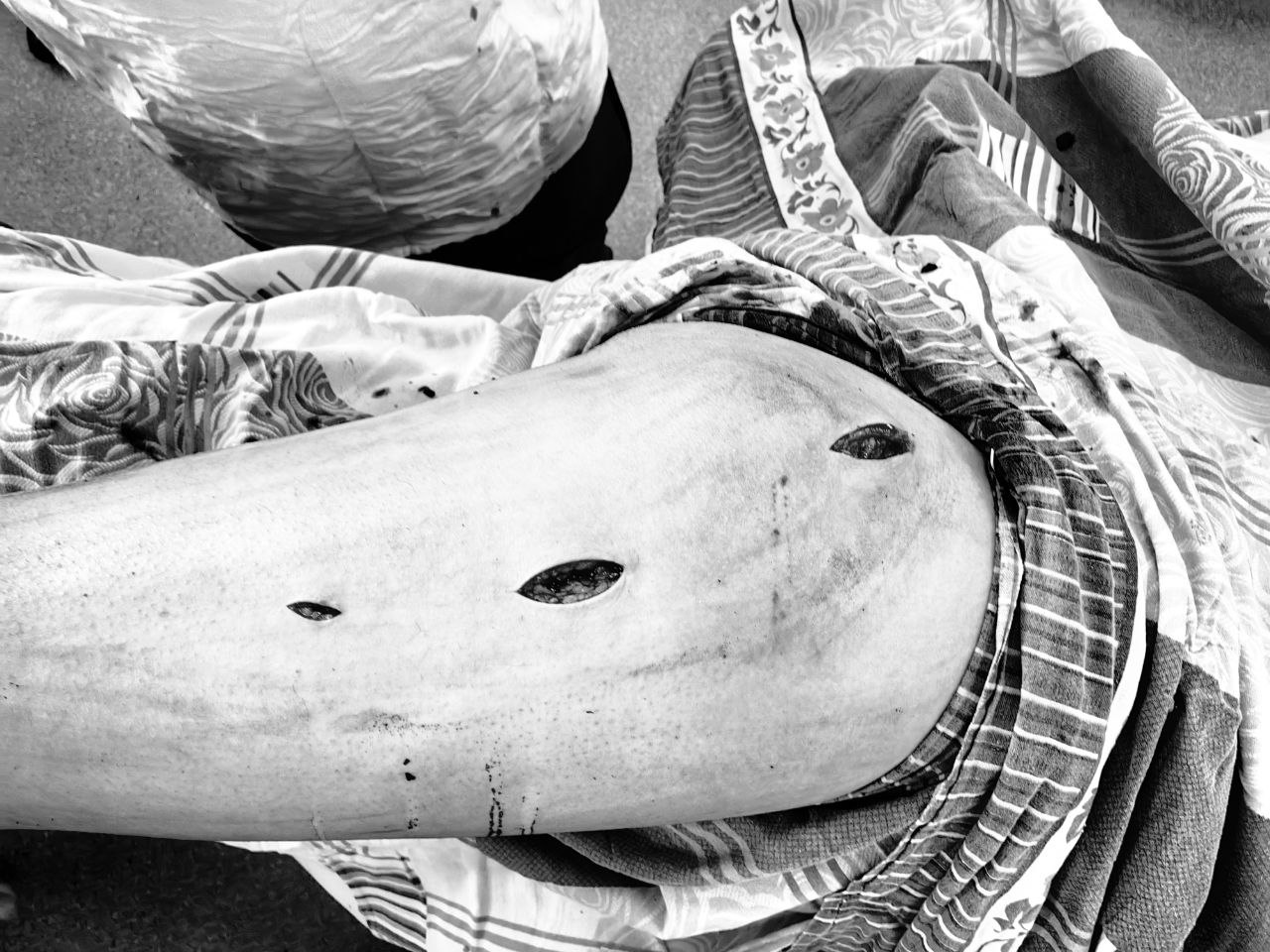 Под постоянным контролем электронно-оптического преобразователя пациенту в место перелома бедренной кости установили интрамедуллярный штифт, которым зафиксировали отломки в нужном положении. Операция выполняется закрытым доступом, через три разреза. Самый большой из них – всего 2 сантиметра.