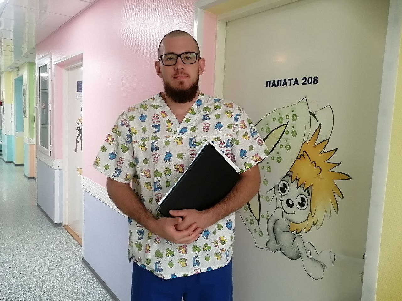 Пациента принимал дежурный врач травматолог-ортопед Виктор Денисов (фото 3). По его решению в операционную срочно пригласили сосудистых хирургов из Сургутской окружной клинической больницы. Отломок бедренной кости пересёк бедренные вену и артерию. Длительное отсутствие кровоснабжения конечности могло привести к её потере. Нога уже была бледной и холодной. Но благодаря оперативной и высокопрофессиональной медицинской помощи необратимых последствий удалось избежать.