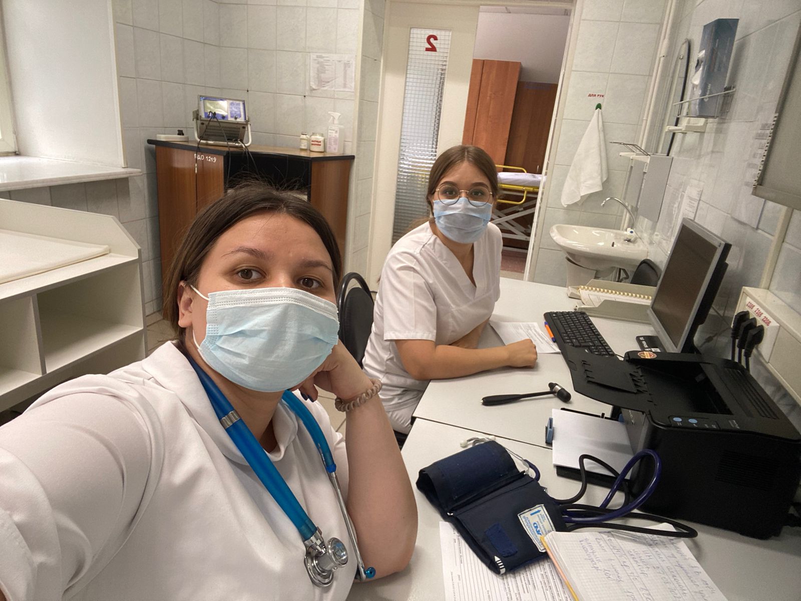 У этих молодых врачей период ординатуры совпал с пандемией. В сложное время, когда в медицинских организациях не хватало рук, появилась возможность совмещать учёбу с работой. И некоторые ординаторы, решив попрактиковаться, уже тогда влились в коллектив травматологической больницы. Понимая, что они примут на себя серьёзную нагрузку, здесь их поспешили оформить на должность врачей-стажёров, тем самым обеспечив заработную плату и наставников. Например, задолго до получения диплома полностью погрузились в реальный лечебный процесс родные сёстры Ирина Голубева и Вероника Сергеева. Девушки считают, что им повезло осваивать профессию одновременно в ВУЗе и больнице. Сегодня они уже не стажёры, а наши полноправные сотрудники: Ирина работает терапевтом в ортопедо-травматологическом отделении №4, Вероника – невролог в детской нейрохирургии.