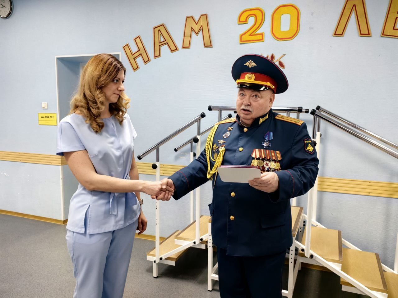 Такой же наградой организация отметила работу двух коллективов травмбольницы, которые обеспечивают бойцам полноценную медицинскую реабилитацию в условиях стационара и на амбулаторном этапе. Медали переданы заведующей амбулаторного отделения медицинской реабилитации Надежде Кильмет и врачу отделения медицинской реабилитации пациентов с нарушением функции центральной нервной системы Юлии Викторовой.