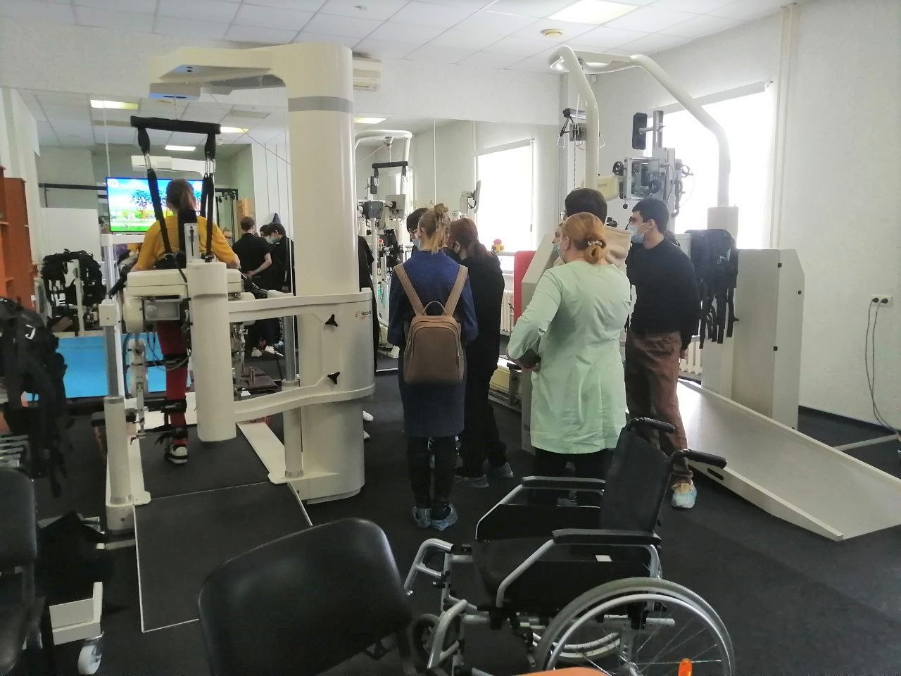На осознанный выбор профессии направлена и наша непрерывная профориентационная работа со школами. Общие обзорные экскурсии по больнице или углублённое знакомство с каким-то одним направлением – в соответствие с запросами учебных заведений мы строим разные маршруты. Особый интерес школьники неизменно проявляют к сложному диагностическому оборудованию, рентген-операционной и установленному там современному ангиографу, реабилитационным отделениям – с их роботизированными тренажерами, залами механотерапии и лечебной физкультуры, физиокабинетами и бассейном.