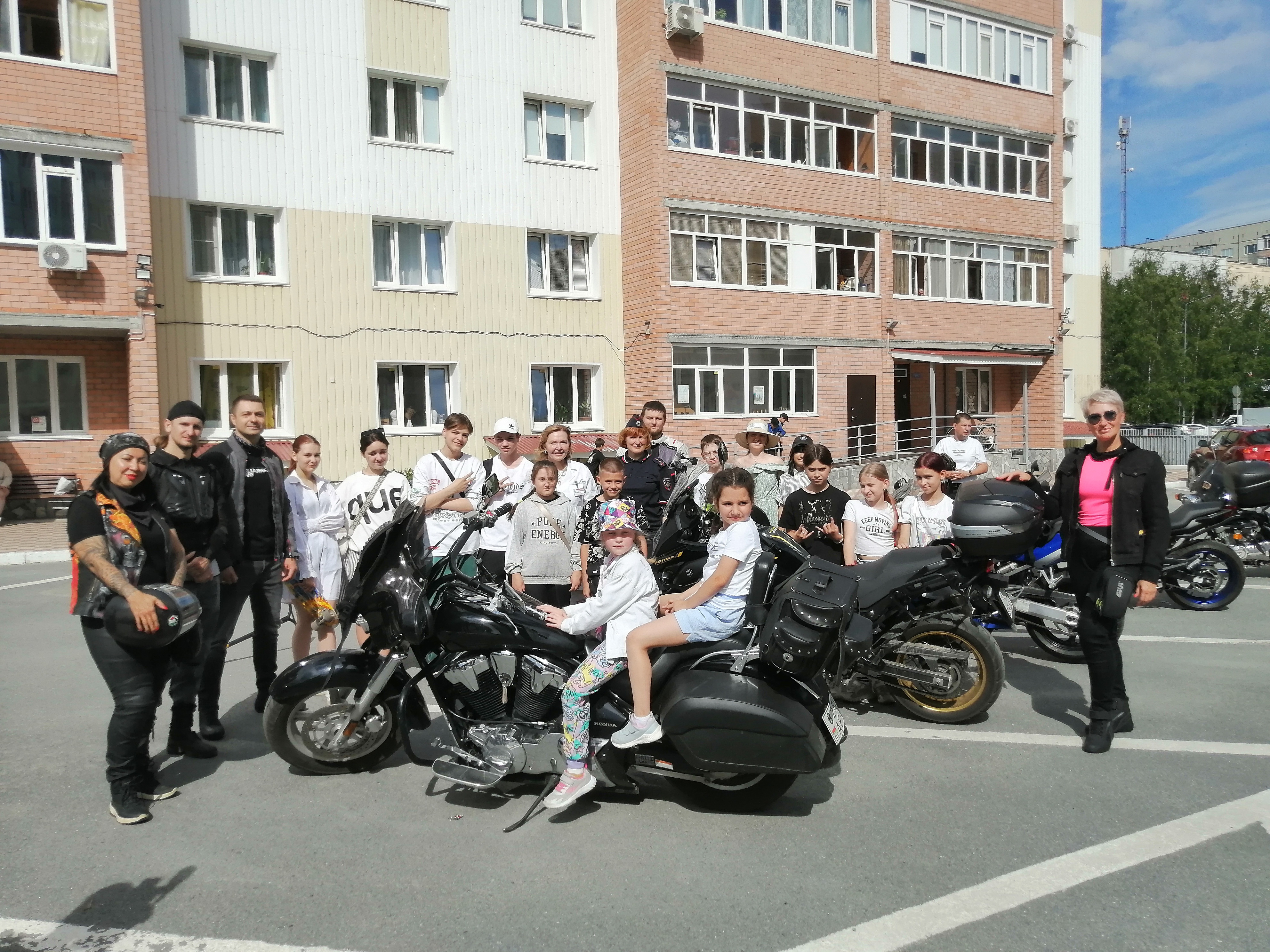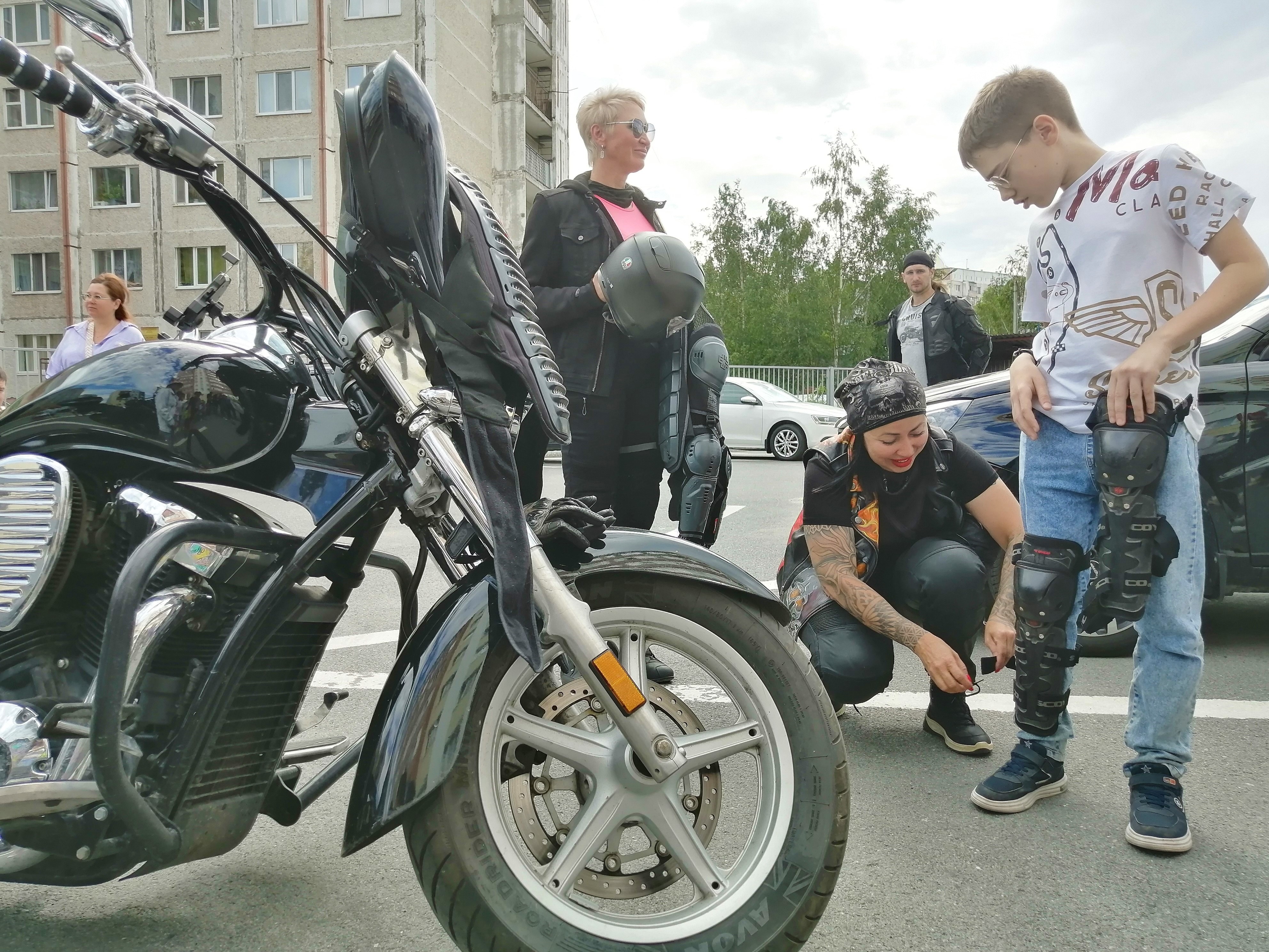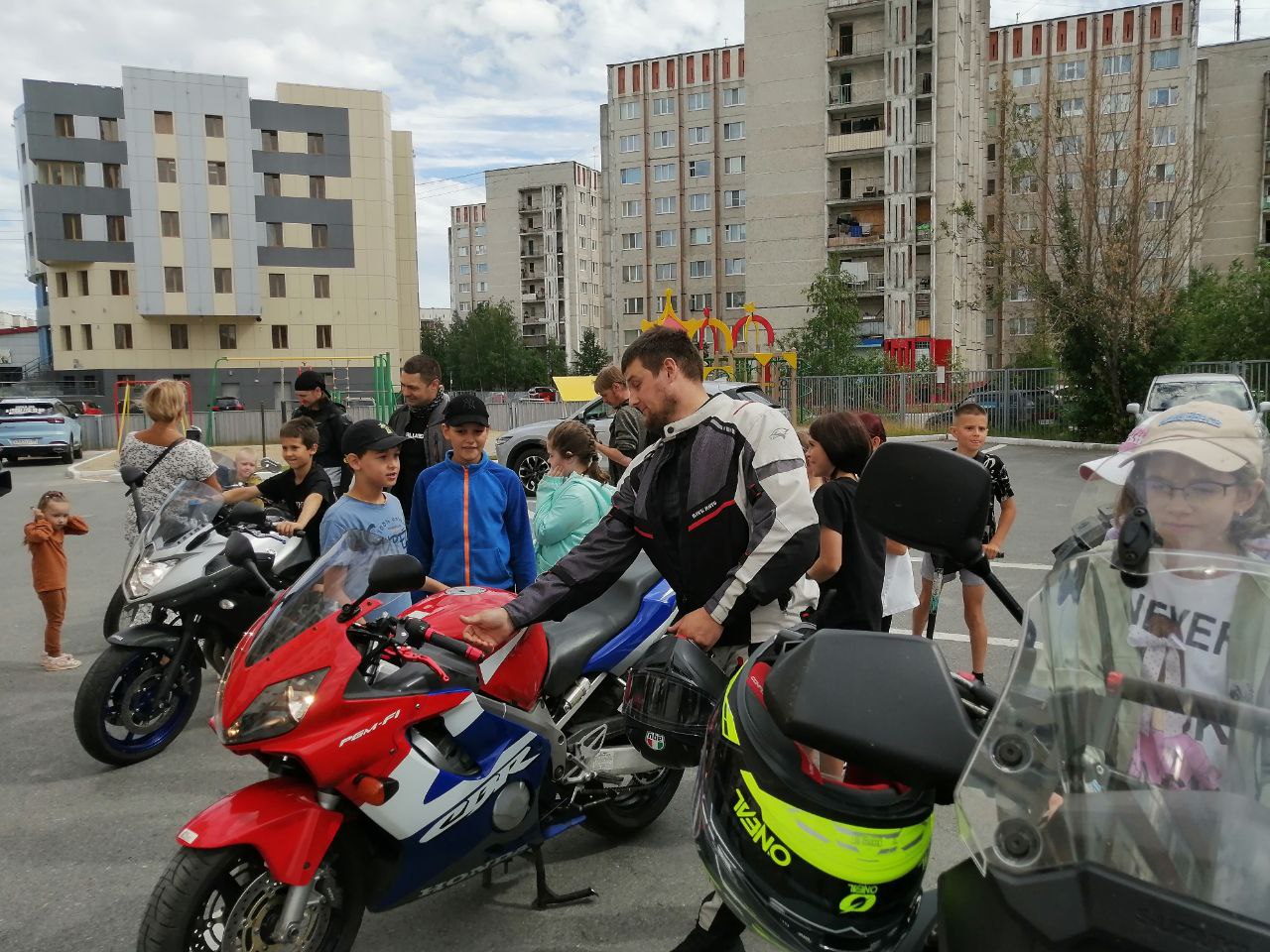 Примерить «черепаху» и посидеть за рулём настоящего мотоцикла. На очередную встречу по профилактике летнего травматизма к своим друзьям из студии «Счастливый художник» мы пришли не одни. В стремлении приобщить подрастающее поколение к культуре использования велоэкипировки нас поддержали представители байкерского сообщества «МотоПритяжение».