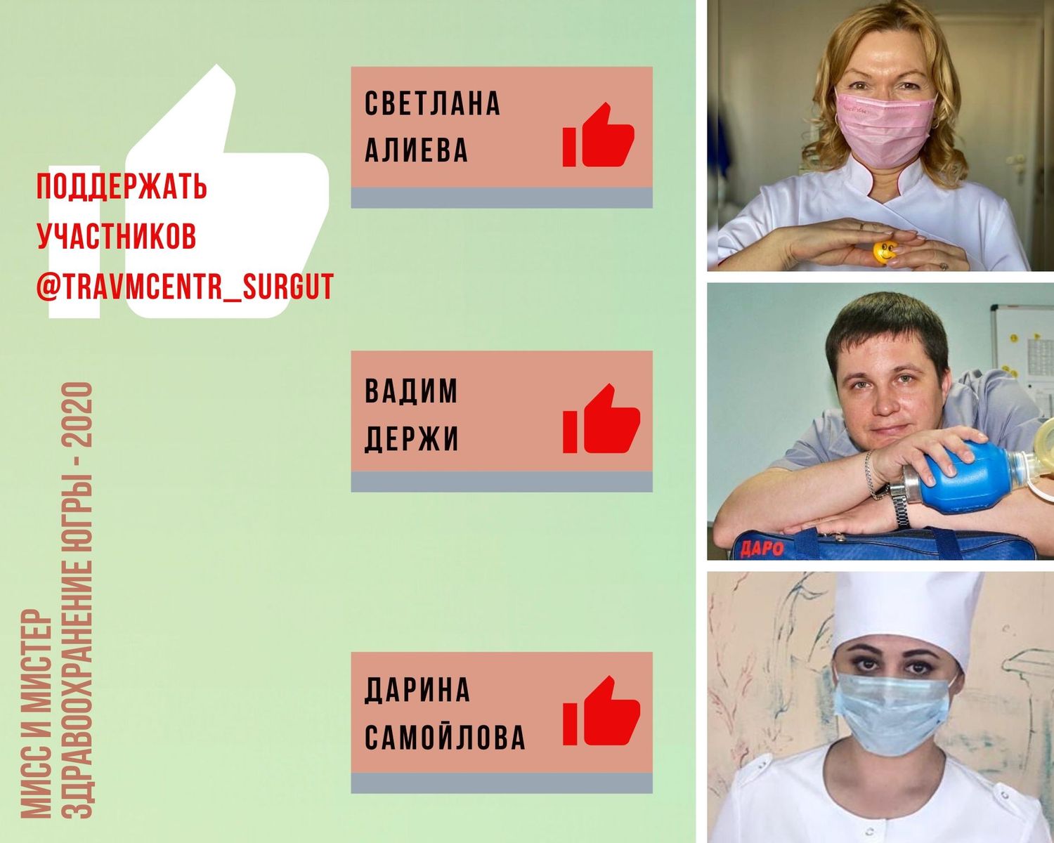 Поддержать участников Травмбольницы можно, проголосовав в «Инстаграме» клиники, – @travmcentr_surgut.