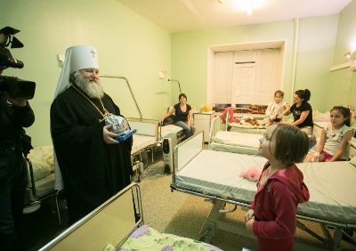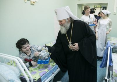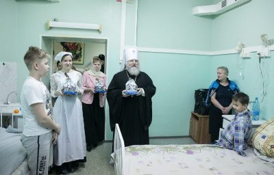 В рамках визита Митрополит Ханты-Мансийский и Сургутский Павел посетил детское травматолого-ортопедическое отделение, поздравил пациентов и сотрудников с наступившим Рождеством Христовым. Ребятам вручили сундучки со сладостями и творческие наборы. Напомним, что за медицинской помощью в новогодние праздники в больницу обратилось 355 детей, из них 17 были госпитализированы. После встречи с пациентами и сотрудниками Травматологической больницы митрополит Ханты-Мансийский и Сургутский Павел совершил вечернее богослужение в храме в честь святителя Луки архиепископа Симферопольского и Крымского.