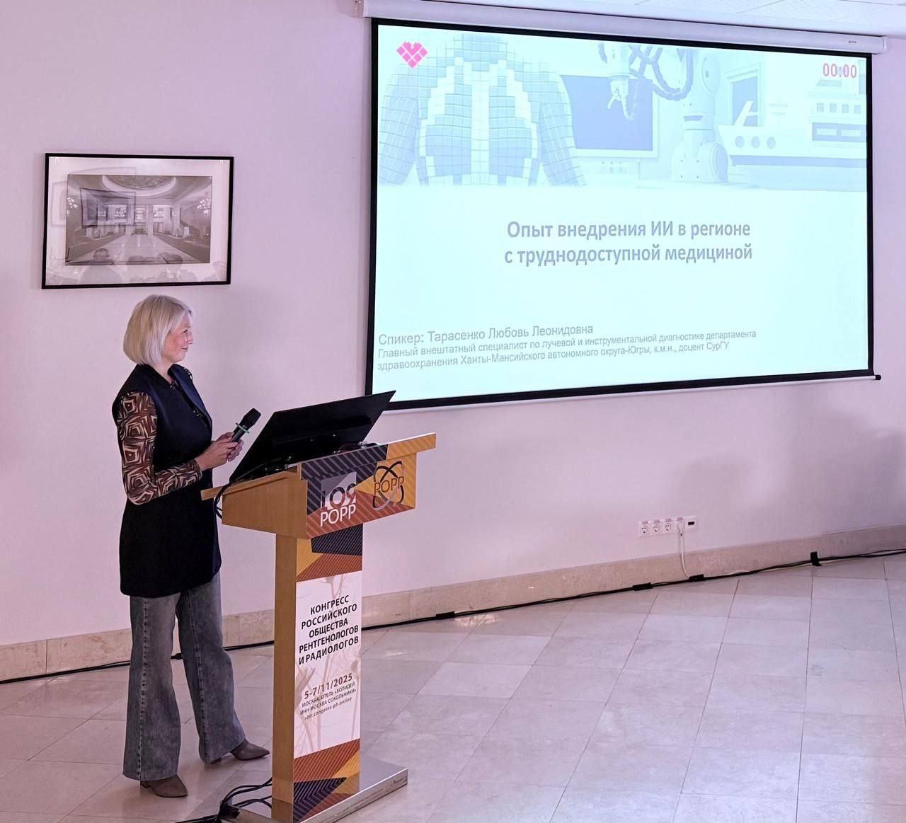 Главный рентгенолог округа, заведующая рентгенологическим отделением Сургутской травмбольницы, кандидат медицинских наук, доцент Любовь Тарасенко стала единственным региональным экспертом на встрече, посвященной использованию технологий искусственного интеллекта в лучевой диагностике. Все остальные докладчики - это федеральные спикеры: представители Минздрава, Минцифры, ведущих медицинских центров Москвы и Санкт-Петербурга. Секцию открыл заместитель министра здравоохранения РФ Вадим Ваньков.