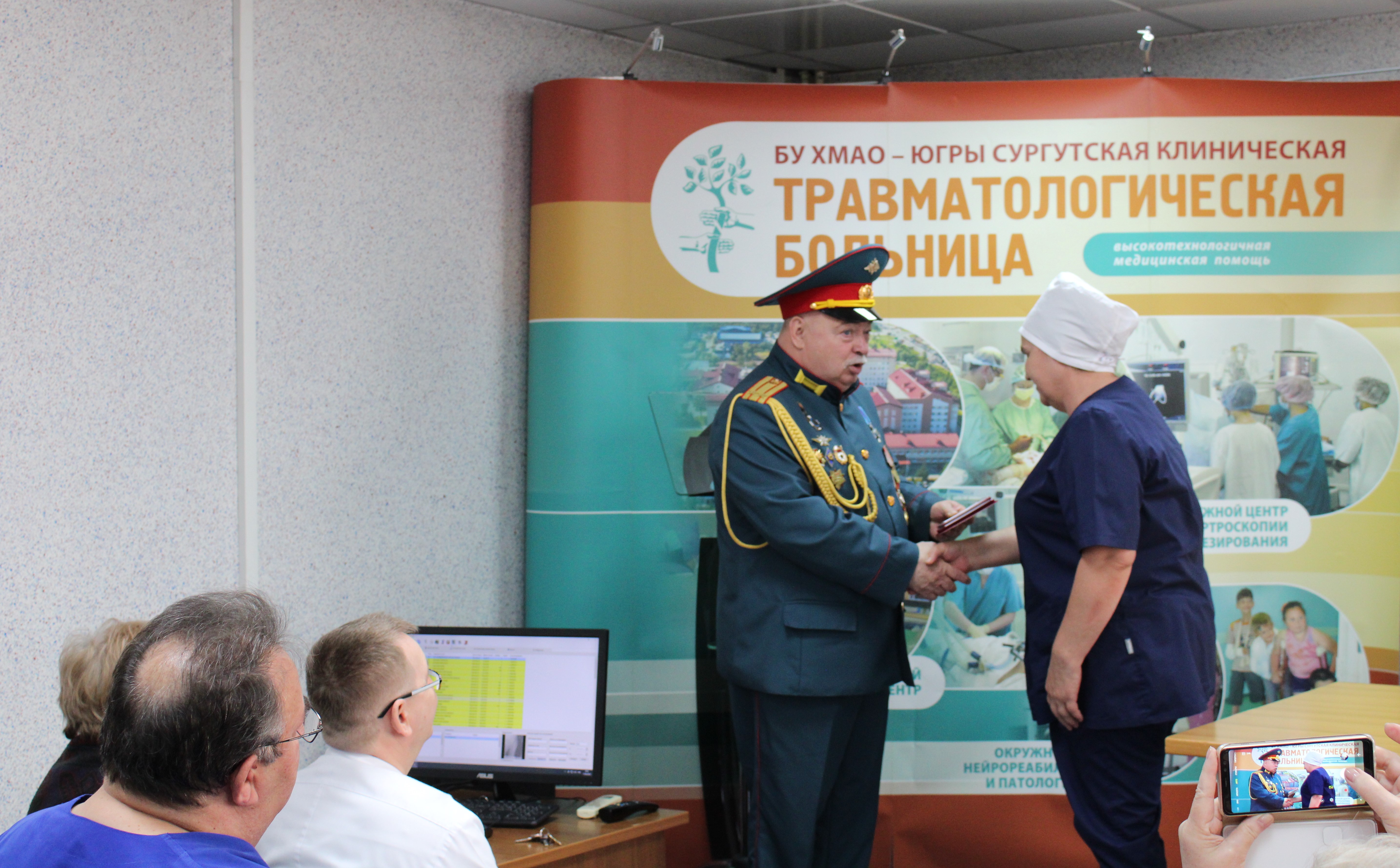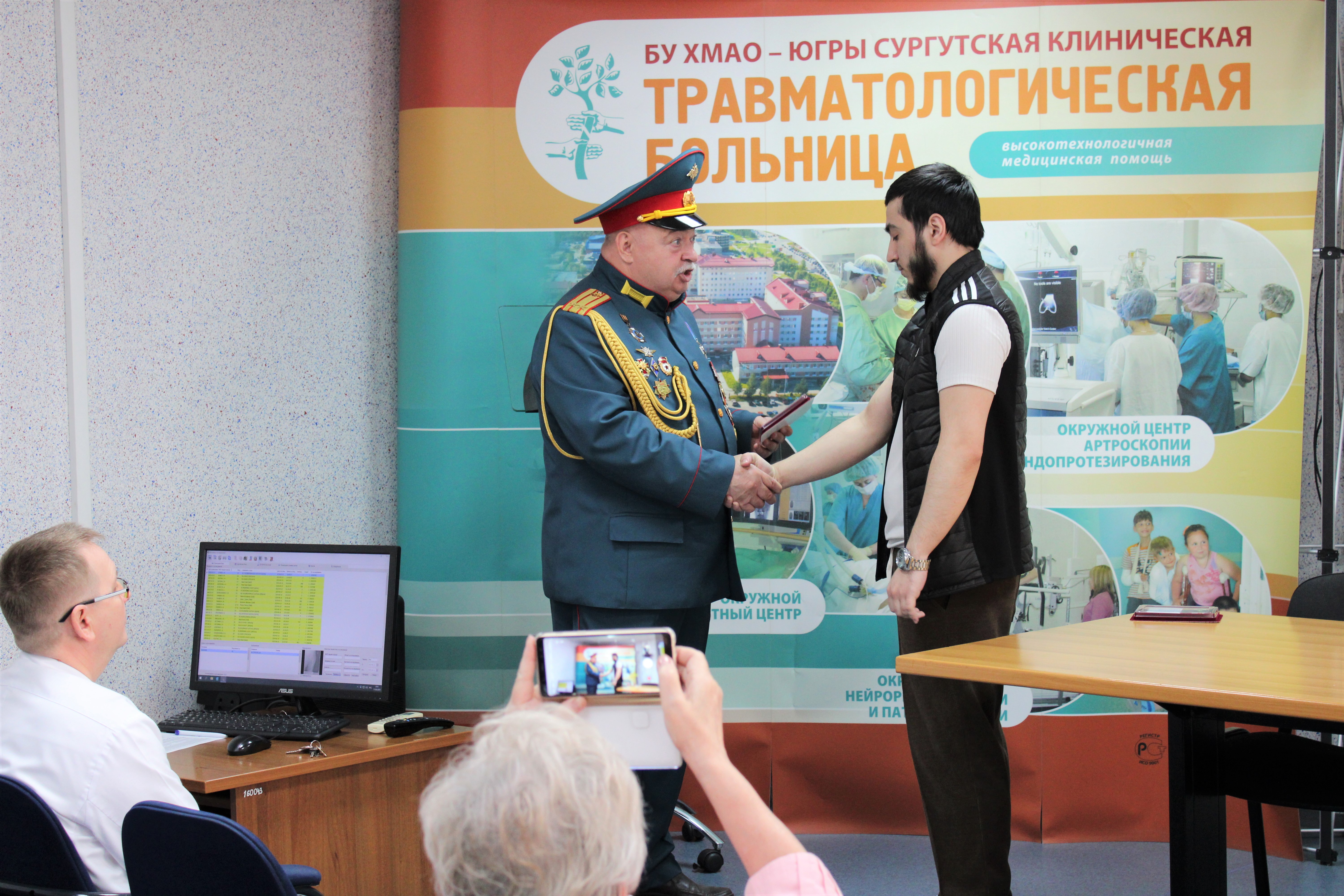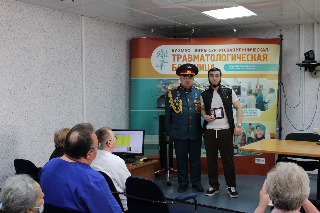 Двух сотрудников нашей клиники сегодня чествовали на утренней планёрке. В присутствии главного врача, его заместителей и заведующих отделениями медали "За участие в СВО" вручил председатель президиума регионального отделения общероссийской общественной организации «Офицеры России» Александр Сусидко.