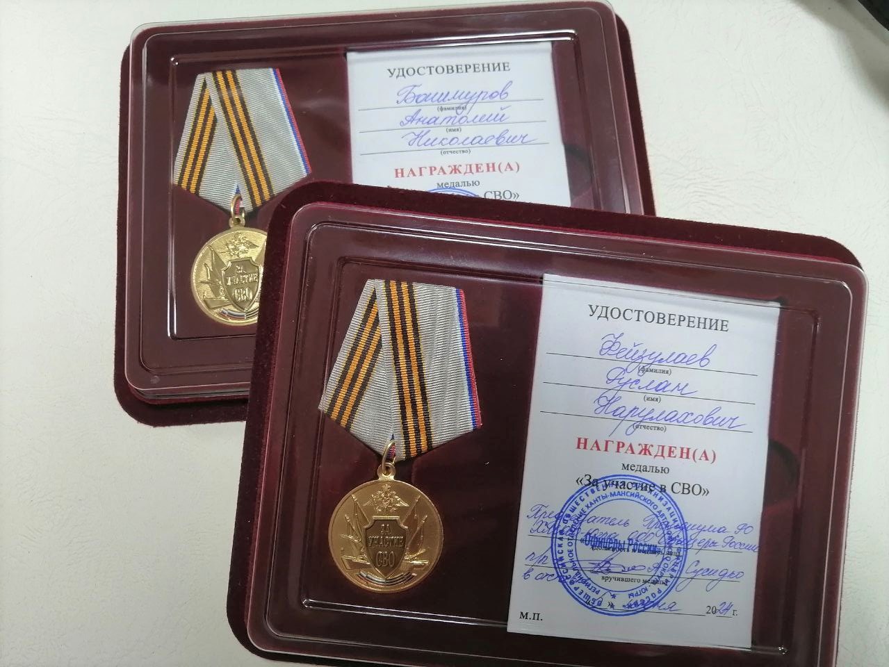 Награды получили грузчик Руслан Фейзулаев, участвовавший в освобождении Мариуполя и других населенных пунктов ДНР, и техник-технолог пищеблока Анатолий Башмуров, который до сих пор находится в зоне проведения специальной военной операции. Медаль передана шеф-повару Елене Арслановой.