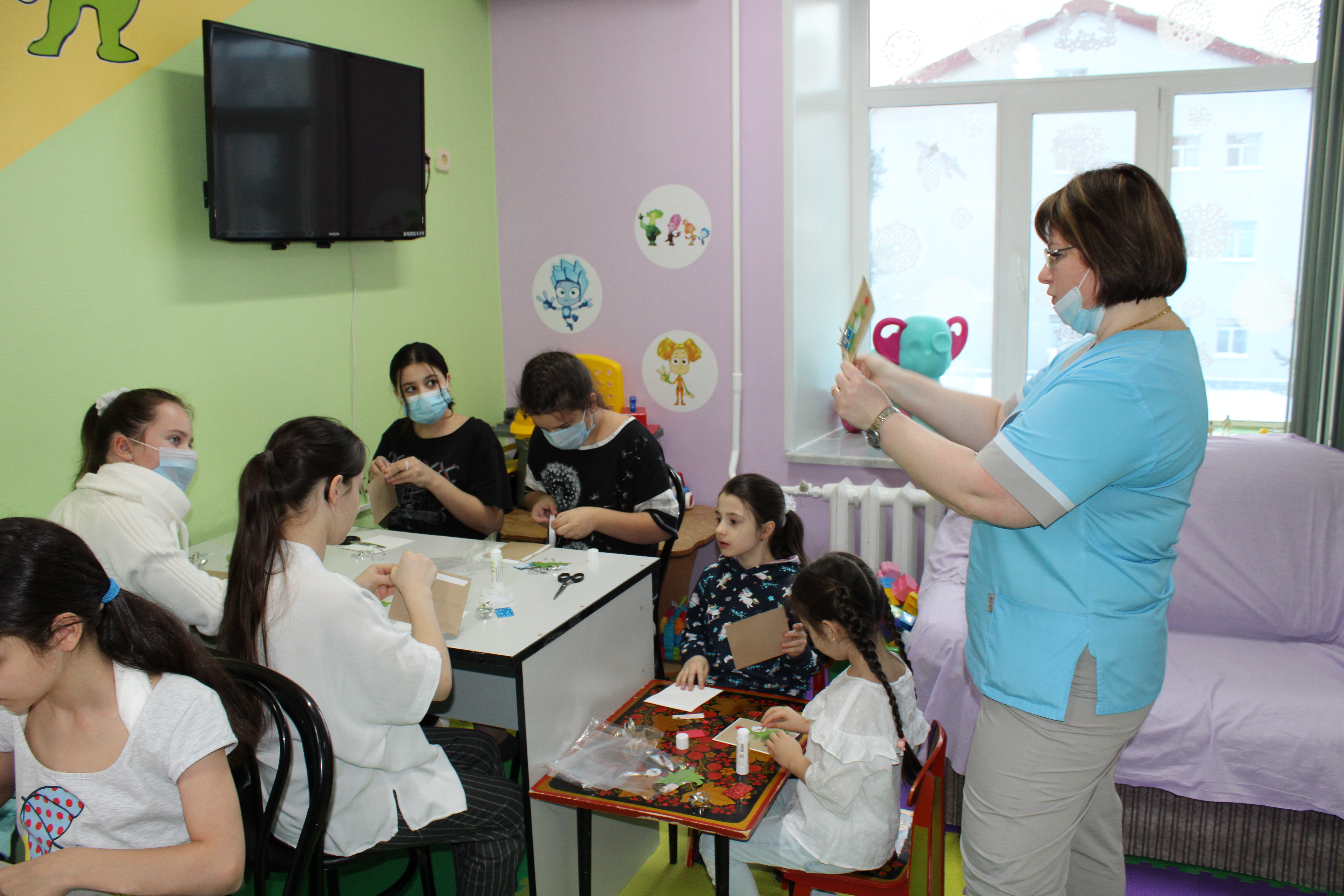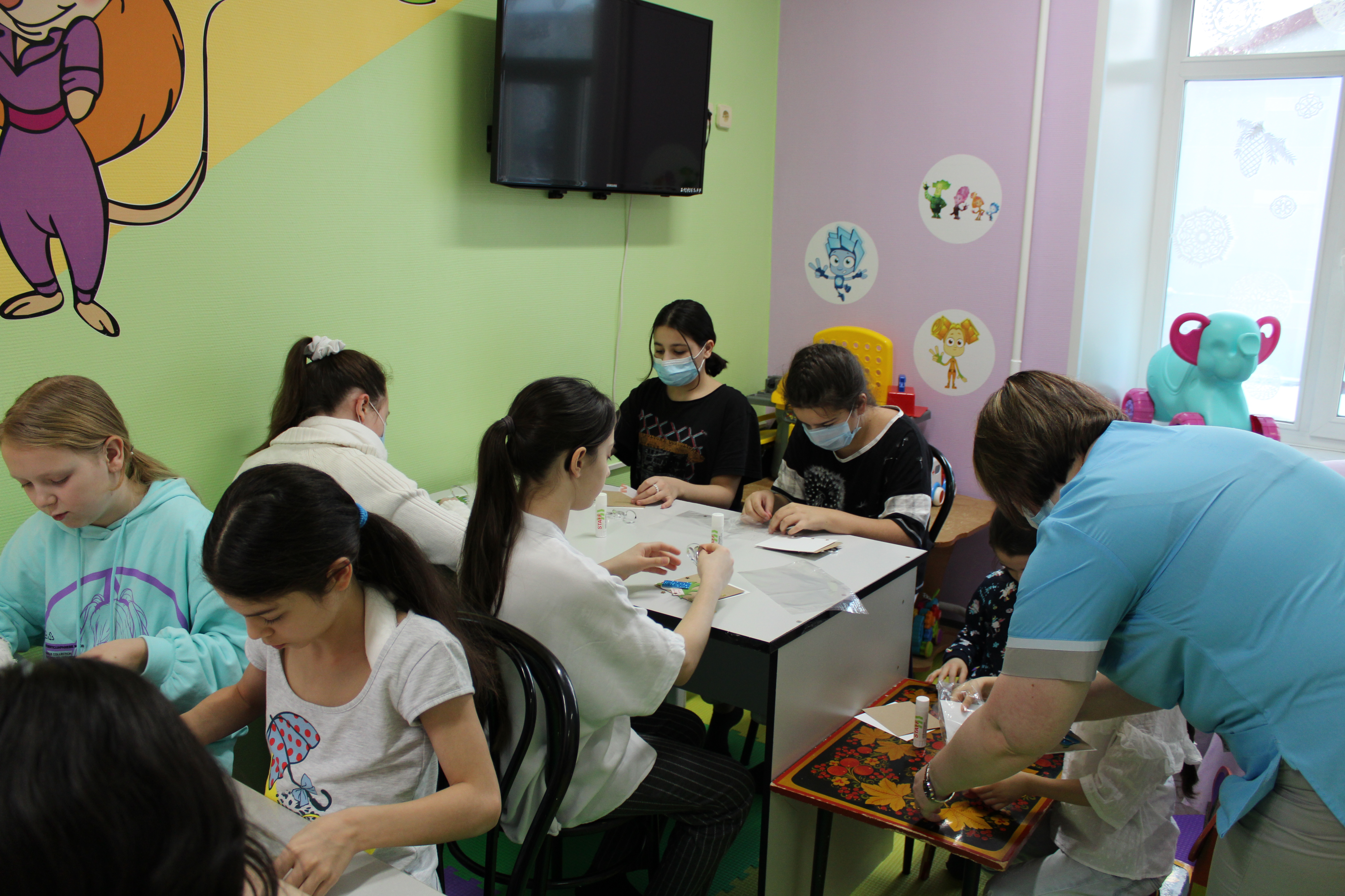 Оксана Николаевна продумывает свои мастер-классы с учётом безопасности и особенностей аудитории. Понимая, что некоторые ребята не смогут полноценно работать руками из-за повязок или гипса, она заранее делает заготовки. Поэтому ножницами дети пользуются по минимуму. Их главные инструменты - клей-карандаш и, конечно, собственная фантазия. Следующее занятие Оксана Бакуменко планирует провести с юными пациентами травмбольницы в начале весны, к 8-му Марта.