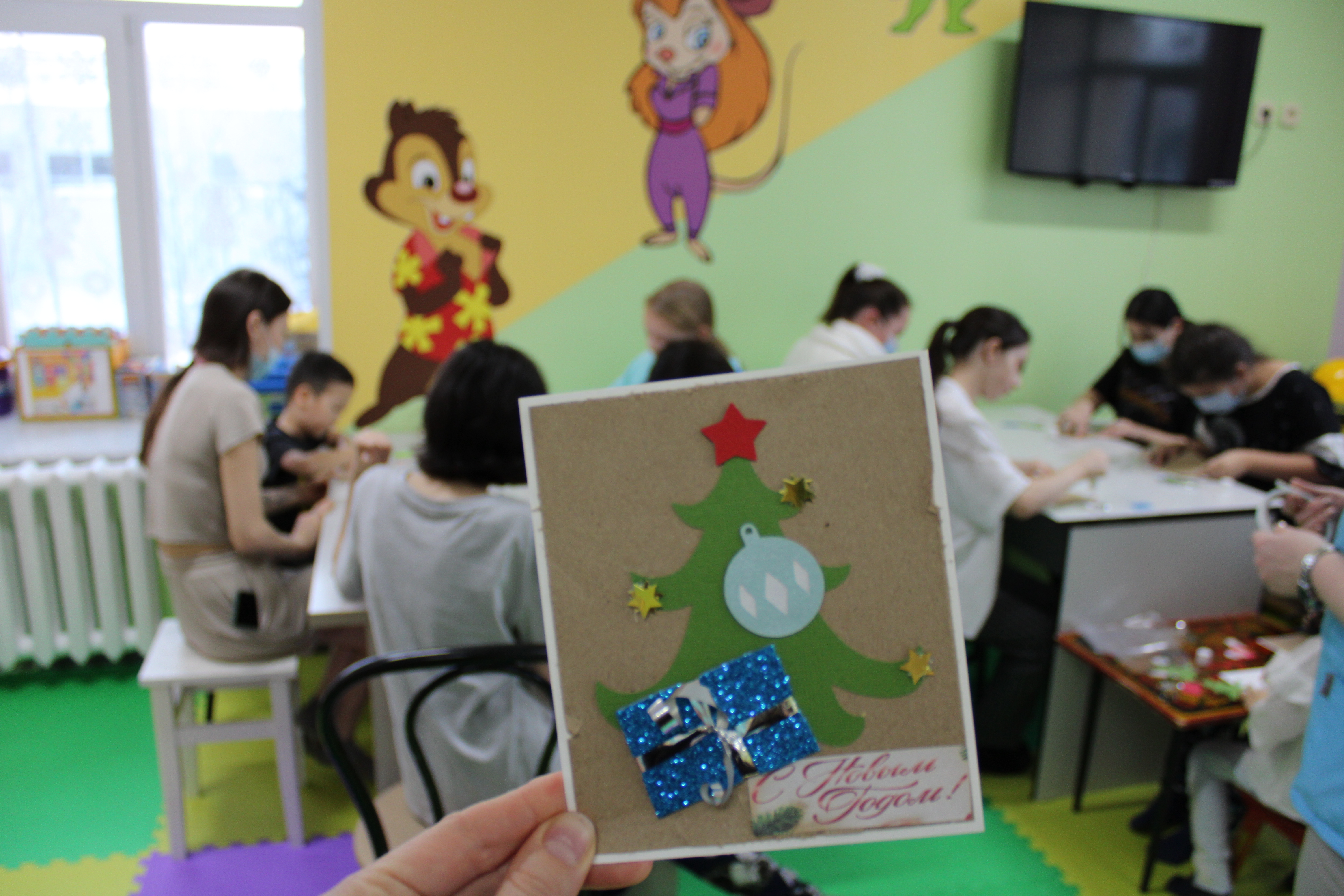 После периода жестких ограничений, связанных с санитарно-эпидемиологической обстановкой, в детских отделениях Сургутской травмбольницы возобновляются мероприятия развлекательного и творческого характера. Сегодня пациентов пригласили в игровую комнату на мастер-класс по изготовлению новогодней открытки. Его провела старшая медсестра рентгенологического отделения №1 Оксана Бакуменко. В коллективе её знают еще и как заядлую рукодельницу. Она больше 10-ти лет увлекается скрапбукингом, создавая эксклюзивные открытки, альбомы, блокноты и дневники. Арт-терапия помогает Оксане Николаевне снимать эмоциональное напряжение и восстанавливать душевное равновесие после трудовых будней. Уверена, что для детей этот вид творчества тоже будет полезен. Тем более, в условиях стационара, где время течёт медленно, а тоска по родным и друзьям с каждым днём всё сильнее.