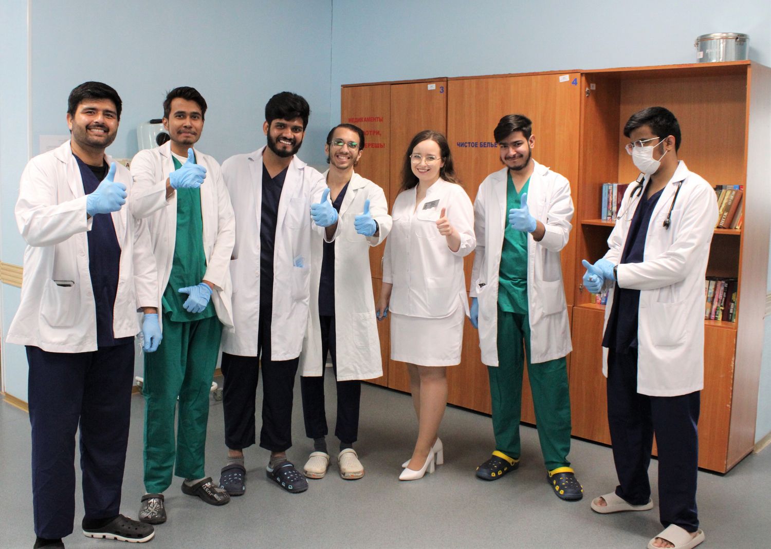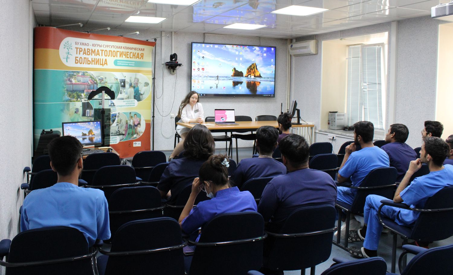 Трёхнедельная практика – обязательная составляющая образовательного процесса для всех студентов Медицинского института СурГУ. Иностранцы – не исключение. Сургутская травматологическая больница является клинической базой ВУЗа по травматологии и ортопедии, анестезиологии и реаниматологии, неврологии и другим профилям. Поэтому летом у нас традиционно много практикантов. Сегодня среди них – 38 граждан Индии и Египта. Их курирует наша врач-невролог Влада Каранова. С ней иностранные студенты уже хорошо знакомы - в качестве ассистента кафедры внутренних болезней она преподаёт в Мединституте и уже не первый год сопровождает их в нашей клинике. Специалист в совершенстве владеет английским языком, поэтому вопрос о взаимопонимании не стоит.
