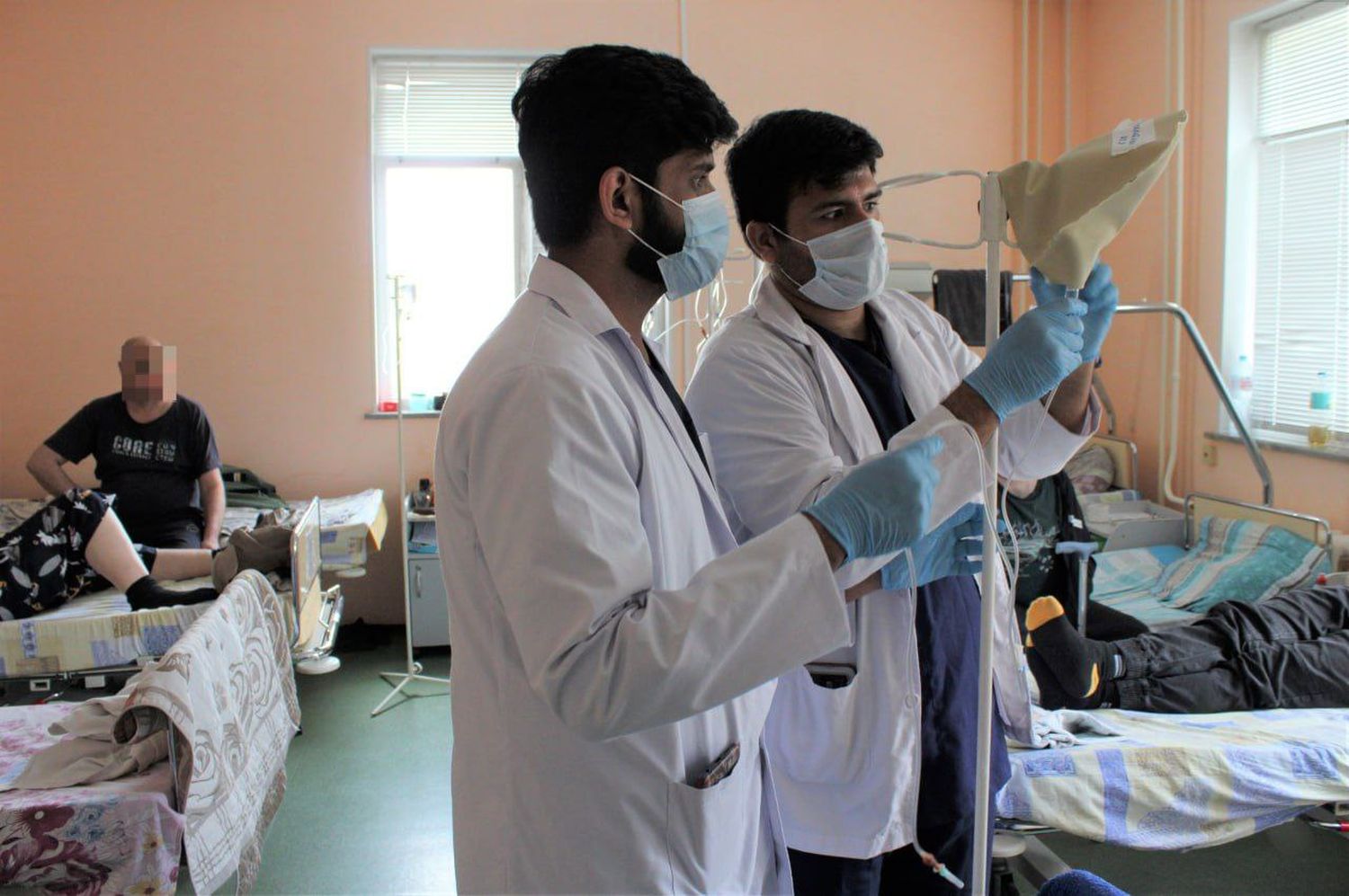 Иностранцев принимают в отделении медицинской реабилитации пациентов с нарушением функции центральной нервной системы. Здесь лечатся и восстанавливаются люди после инсультов, черепно-мозговых и спинномозговых травм. У многих имеется сопутствующая патология – сердечно-сосудистая, желудочно-кишечная, органов дыхания и так далее. Словом, подходящие условия, чтобы на практике закрепить все свои теоретические знания.