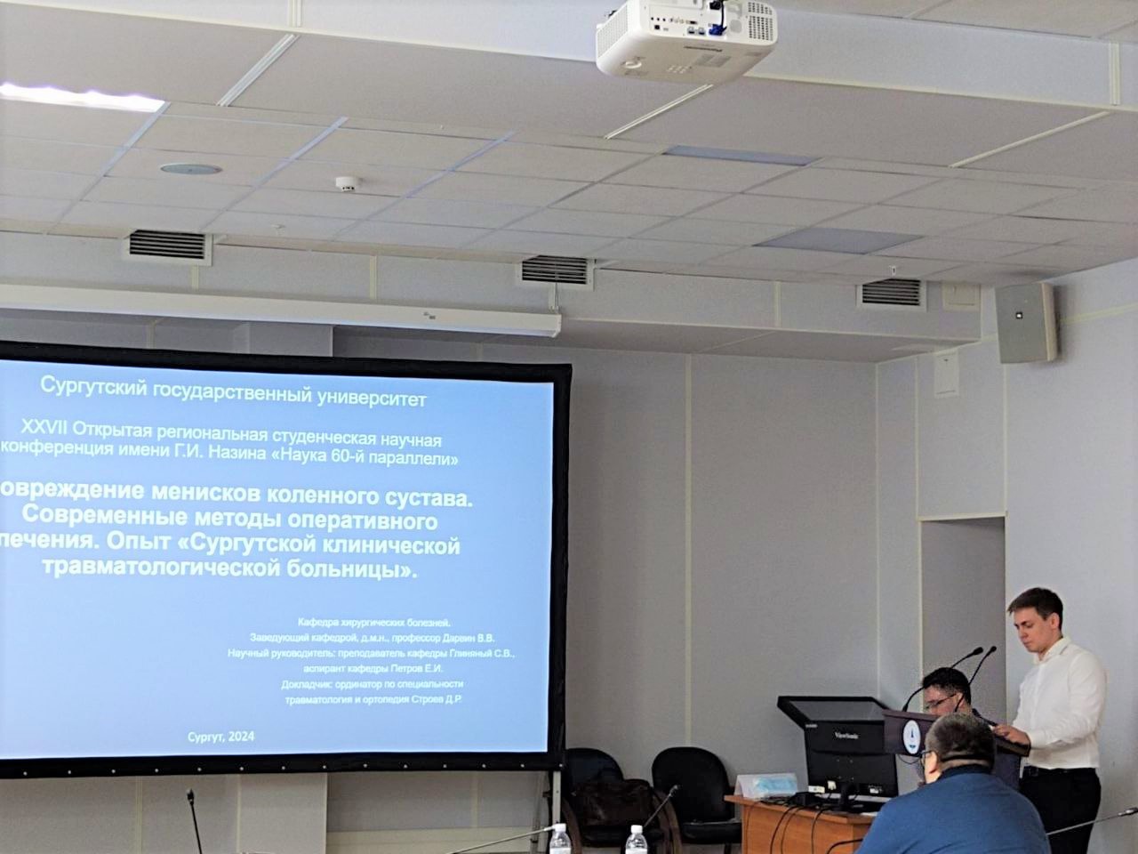 В секции «Актуальные проблемы хирургии» было заявлено около 30-ти докладов. Три из них участники посвятили лечению пациентов с травмами и ортопедической патологией. Это те направления, которые на протяжении многих лет успешно развивает травмбольница. Под руководством заведующего отделением травматологии и ортопедии №1, преподавателя кафедры хирургических болезней Сергея Глиняного студенты Медицинского института Семён Литвинов и Алимат Рамазанова изучили и проанализировали наши методики оперативного лечения переломов проксимального отдела бедра и деформаций переднего отдела стопы. А ординатор Данил Строев представил научному сообществу возможности клиники в лечении пациентов с повреждениями мениска коленного сустава. Его курировал травматолог-ортопед, аспирант кафедры хирургических болезней Евгений Петров.