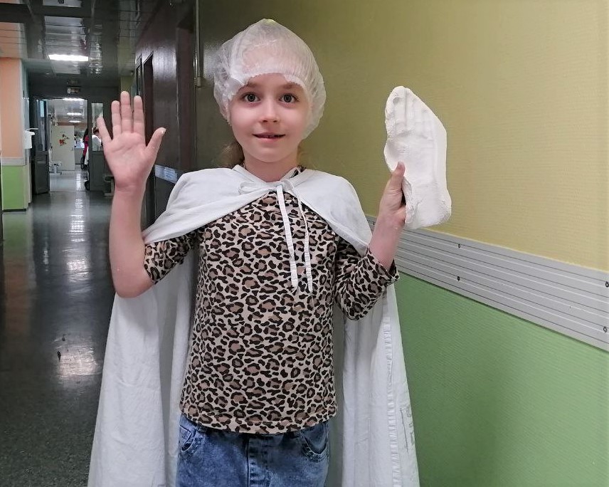Если старшеклассникам в основном интересно знакомиться с высокотехнологичным оборудованием, то детворе из «началки» нужно как можно больше интерактива, чтобы самим участвовать в процессе. Беспроигрышный и проверенный вариант – гипсовый кабинет. Его хозяйка Анастасия Большакова показала технику фиксации перелома лучевой кости. Это одна из самых распространённых детских травм при падениях с велосипедов, самокатов, различных горок. Свой мастер-класс медсестра детского отделения травматологии и ортопедии сопровождала увлекательным рассказом о том, как и где добывают гипс, о его свойствах и истории появления гипсовых повязок. Каждый участник экскурсии успел побывать в роли и гипсового техника, и пациента.