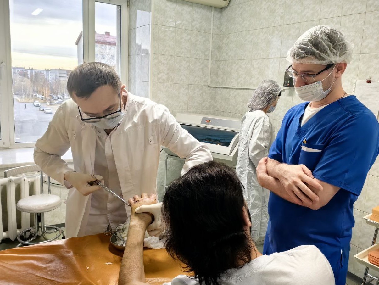 22-летний мужчина обратился в Сургутскую травмбольницу после травматической ампутации блока пальцев на левой руке. Тяжелую травму он получил при работе с циркулярной пилой. Отчленённый сегмент сообразил привезти с собой*. Врач оценил его жизнеспособность и принял решение о проведении реплантации.
