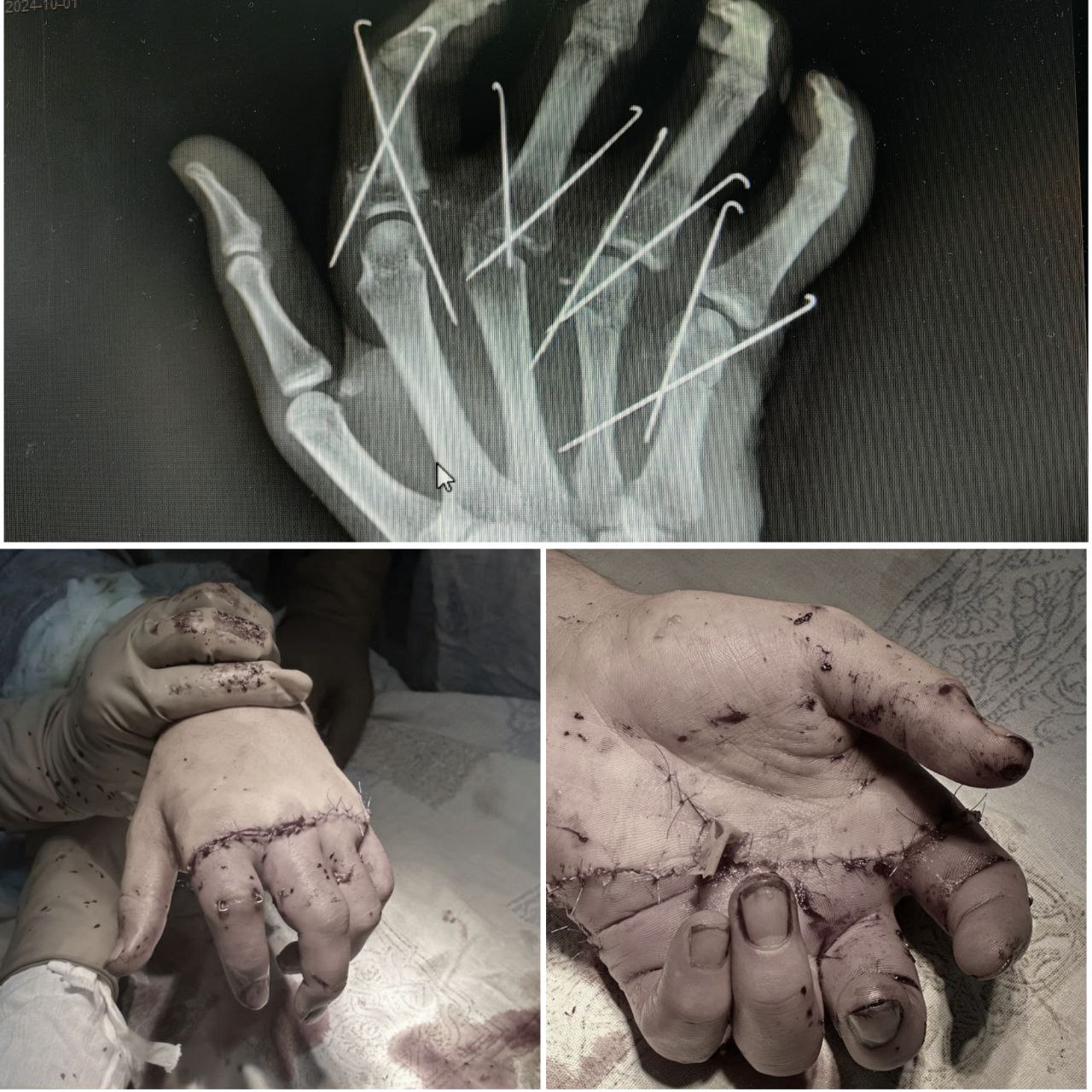 После выписки он остаётся под наблюдением и еженедельно приходит на перевязки. Во время очередного посещения ему удалили фиксирующие спицы. Сейчас главная его задача – усердно выполнять упражнения на восстановление двигательной функции. При должных тренировках пальцы вновь начнут слушаться и примут более правильное положение.