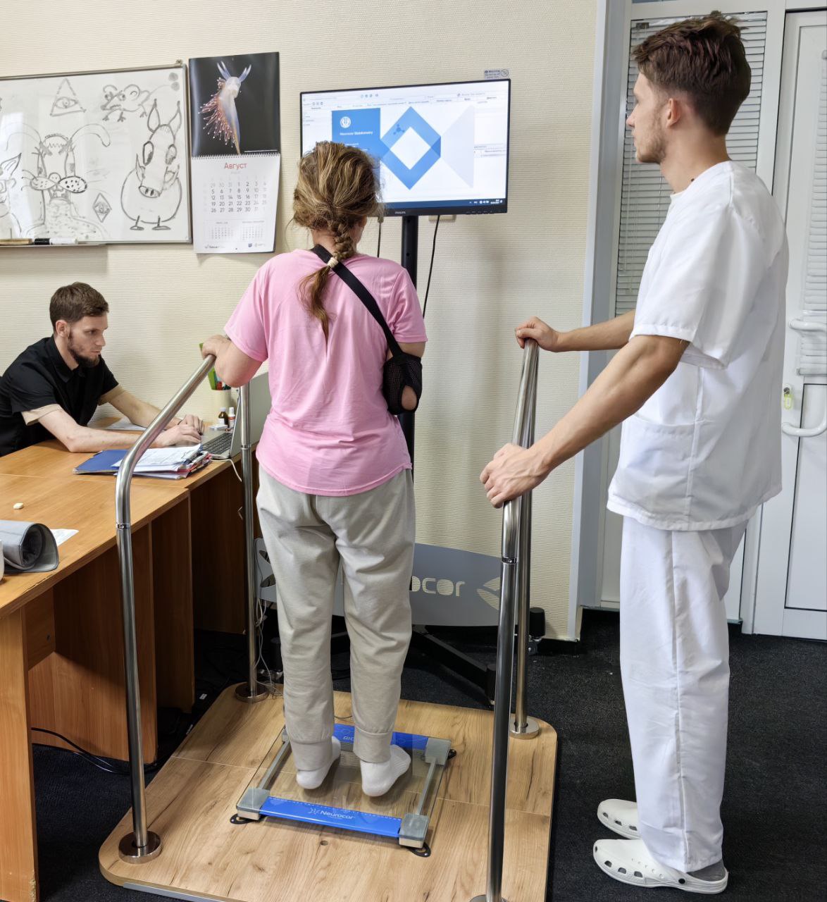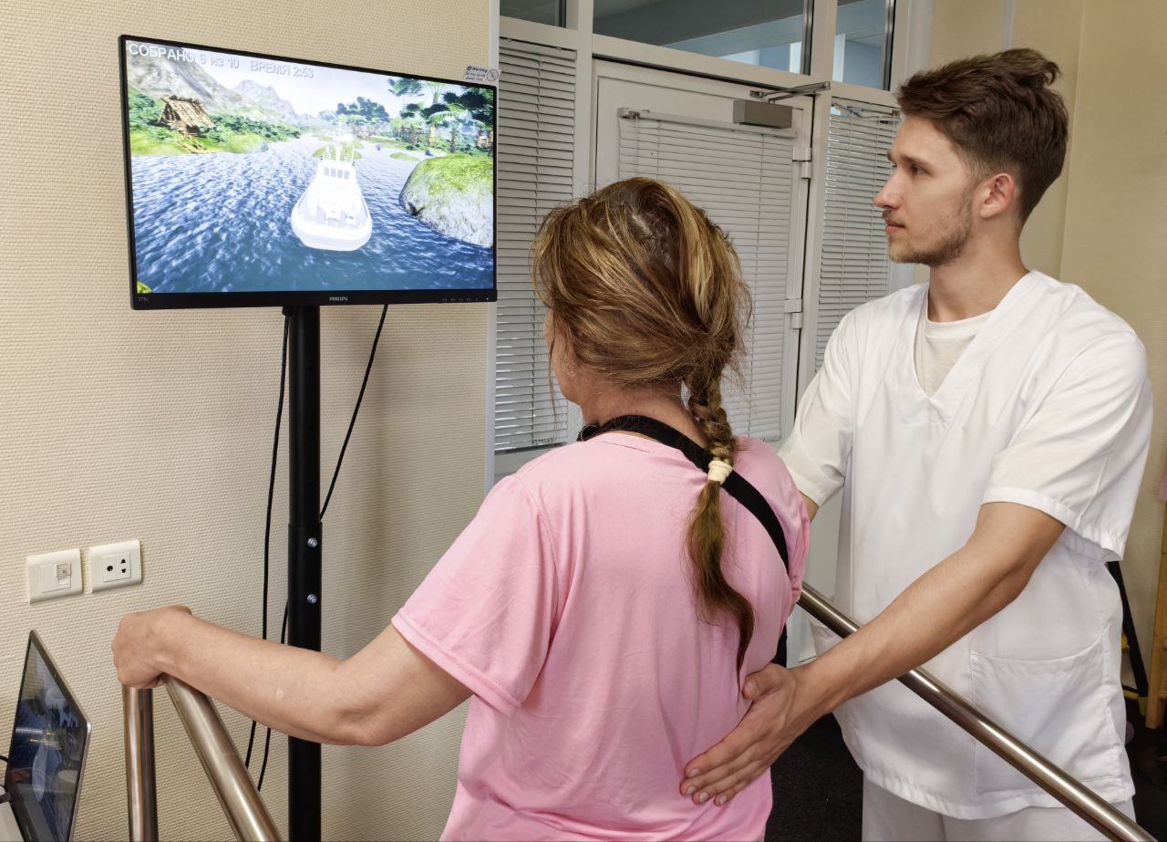Стабилоплатформы и другое высокотехнологичное реабилитационное оборудование клиника приобрела на целевую федеральную субсидию. В этом году у нас крупнейшее его обновление. Напомним, ранее мы получили тренажерные комплексы для восстановления функций кисти и пальцев рук, тренажеры для реабилитации нижних и верхних конечностей у ослабленных и лежачих больных, беговые дорожки с БОС, аппарат для транскраниальной магнитной стимуляции. С очередной поставкой ждём велотренажеры, также оснащенные биологически обратной связью.