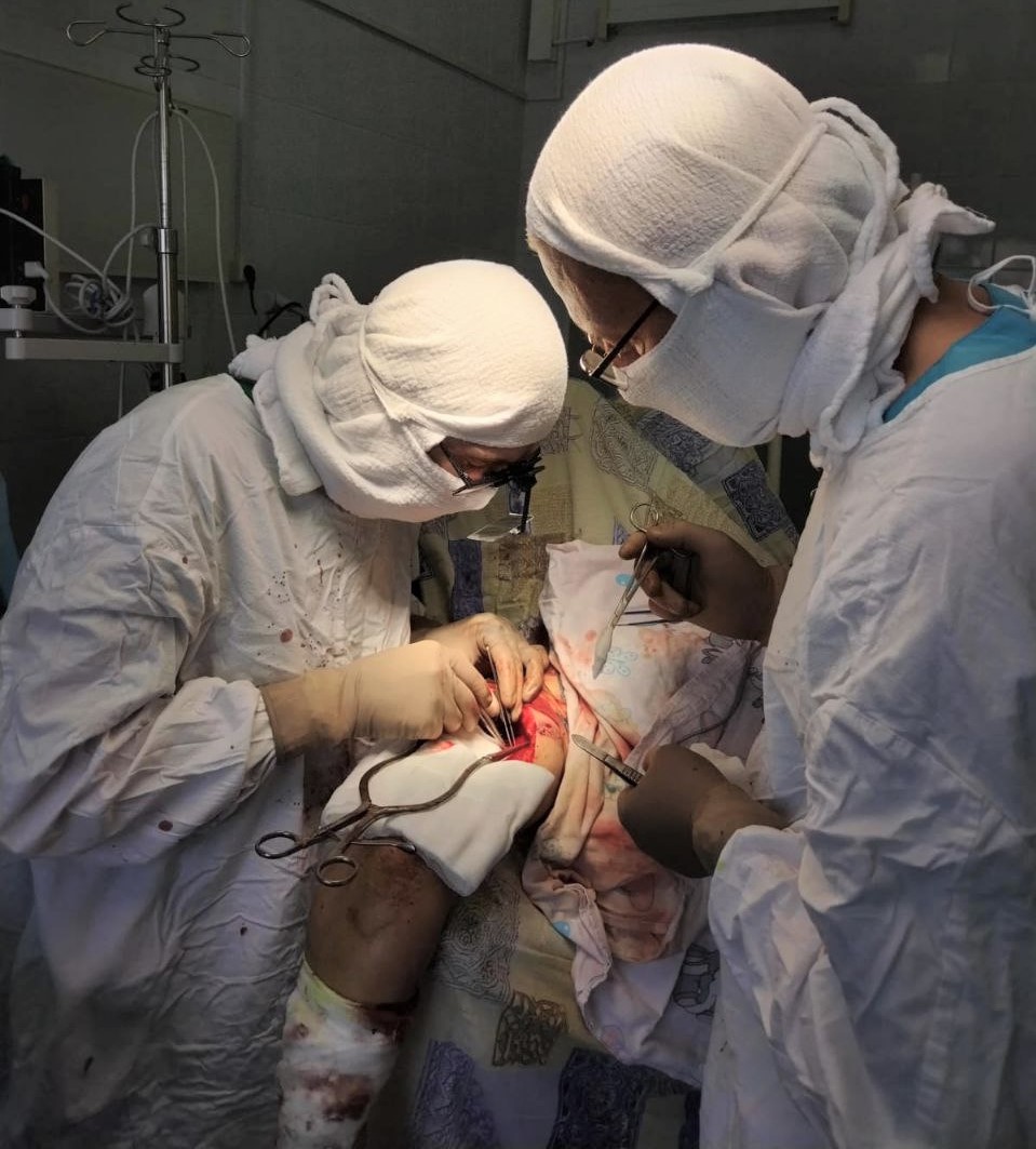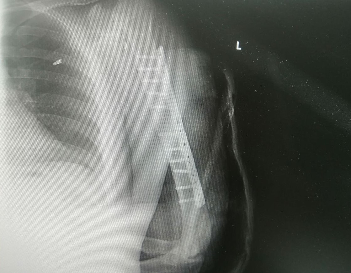 Травматологи-ортопеды Владимир Кельметр и Алексей Котов оперировали пациента более четырех часов. Целостность лучевого нерва они восстановили за счет фрагмента сурального нерва, который выделили из голени. Следующим этапом был остеосинтез плечевой кости. Её отломки соединили накостной пластиной, создав условия для скорейшей консолидации перелома.