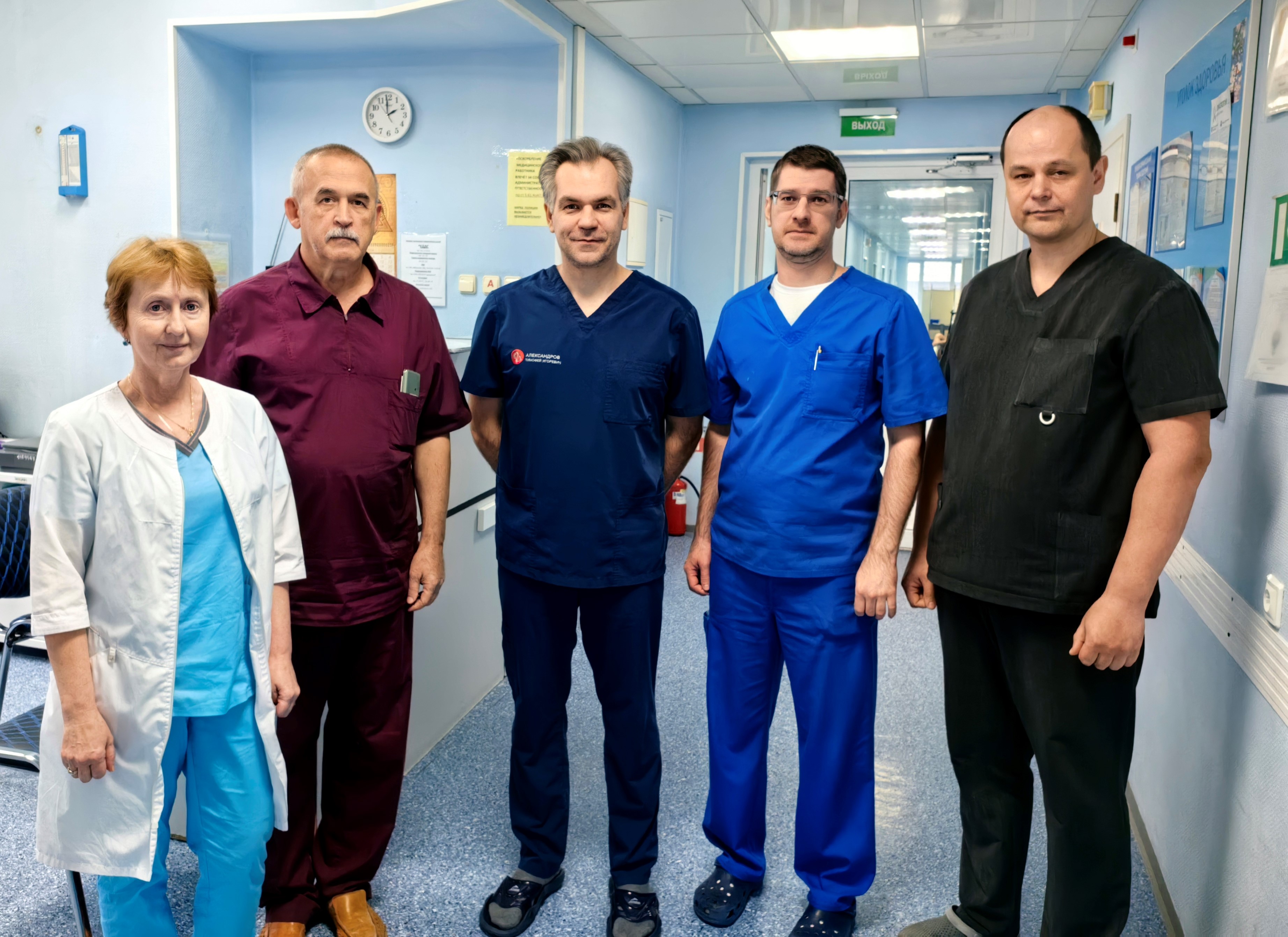 На фото - Тимофей Александров с врачами отделения травматологии и ортопедии №2: Еленой Щеголихиной, Сергеем Пелихом (зав. отделением), Андреем Ивановым, Александром Цапом.
