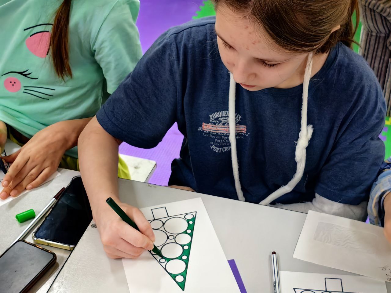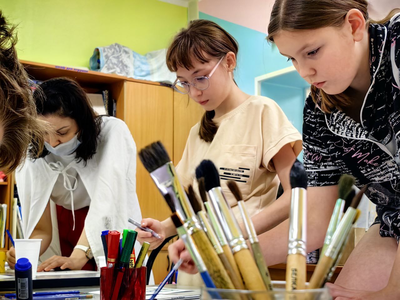 Для воплощения своих художественных фантазий у детей был полный набор инструментов. Особой популярностью пользовались акварельные карандаши. Их необходимо смачивать водой перед рисованием, тогда они дают очень яркий, насыщенный и по-настоящему праздничный цвет. Даже родители не остались равнодушными и присоединись к процессу.