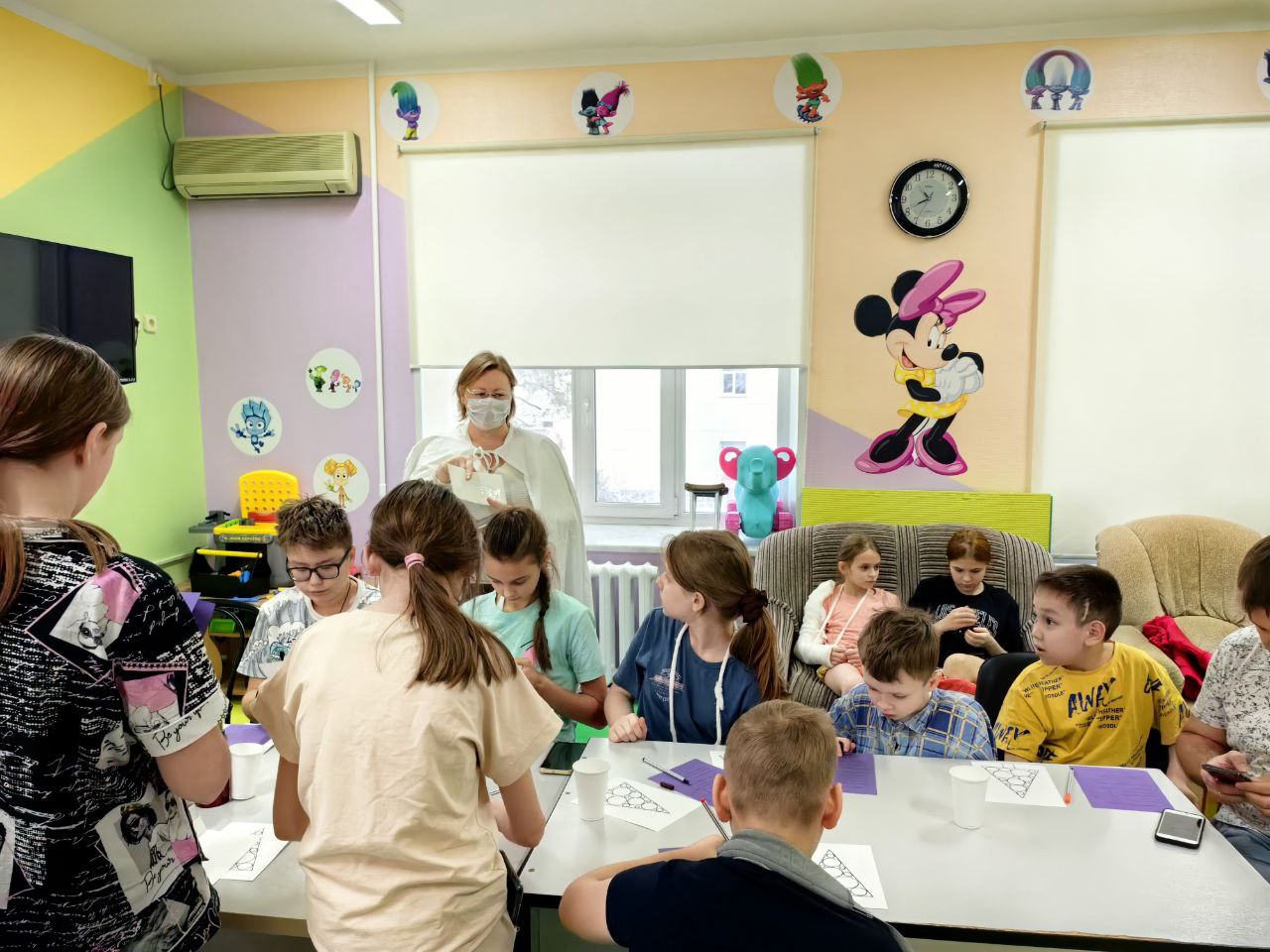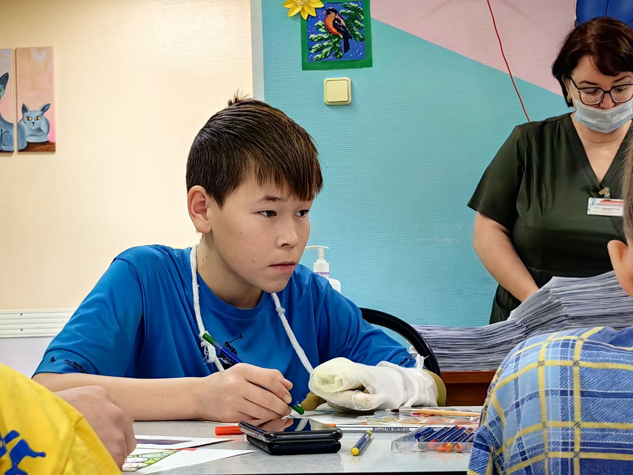 Сегодня вместе с пациентами детского отделения травматологии и ортопедии пишем письмо Деду Морозу и оформляем новогоднюю открытку. С мастер-классом в больницу пришли сотрудники творческой студии "Счастливый художник". Задания заранее продумали так, чтобы они были увлекательными и в то же время максимально просты в техническом исполнении - ориентировались возможности на ребят с травмированными руками. Поэтому поучаствовать смогли все, кто заинтересовался идеей.