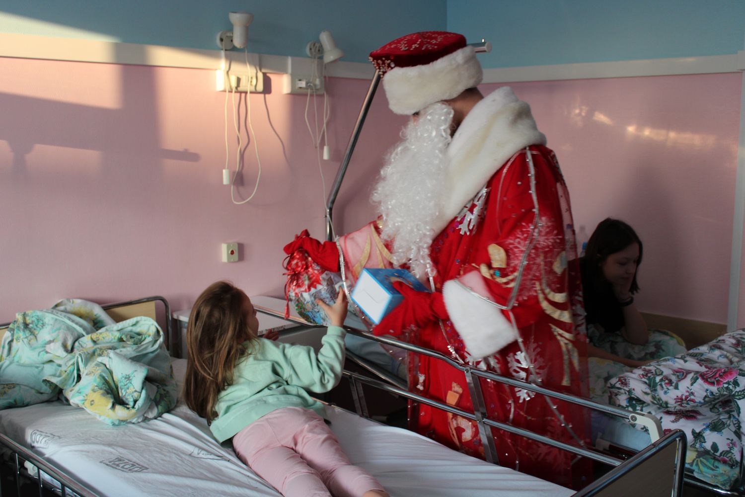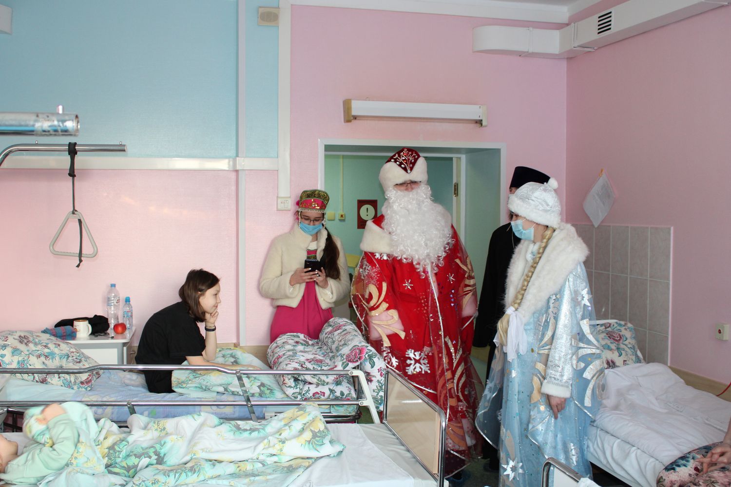 Святки на Руси всегда были временем не только народных гуляний, но и добрых дел. В эти дни принято помогать нуждающимся, навещать одиноких или больных. Традиционно на святочной неделе юные пациенты Сургутской травмбольницы принимают гостей из храма святителя Луки. Прихожане, священнослужители и преподаватели воскресной школы поздравили детей с Рождеством, пожелав им не терять стойкости духа, веры в себя и во всё хорошее. Праздничное настроение ребятам создавали Дед Мороз и Снегурочка, которые, разумеется, появились не с пустыми руками.