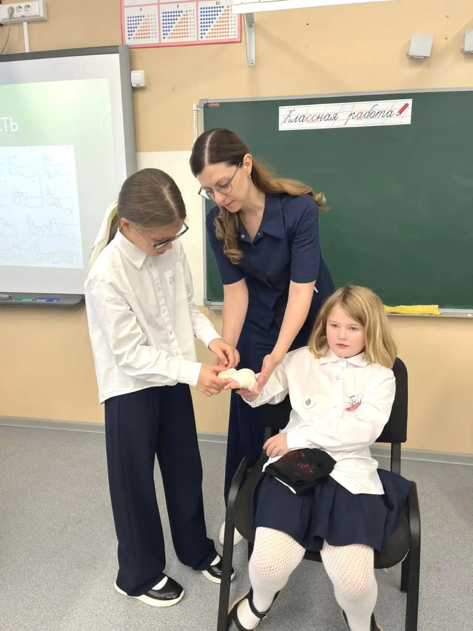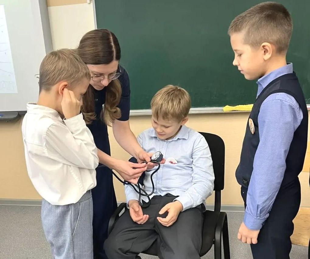 Ребята могли почувствовать себя настоящими медиками, повторяя за врачом манипуляции с тонометром, фонендоскопом, рефлекторным молоточком, перевязочным материалом. Узнали, как и зачем измерять артериальное давление; почему дергается нога при постукивании инструментом по сухожилию; чем можно помочь себе или другу при ушибах и растяжениях.