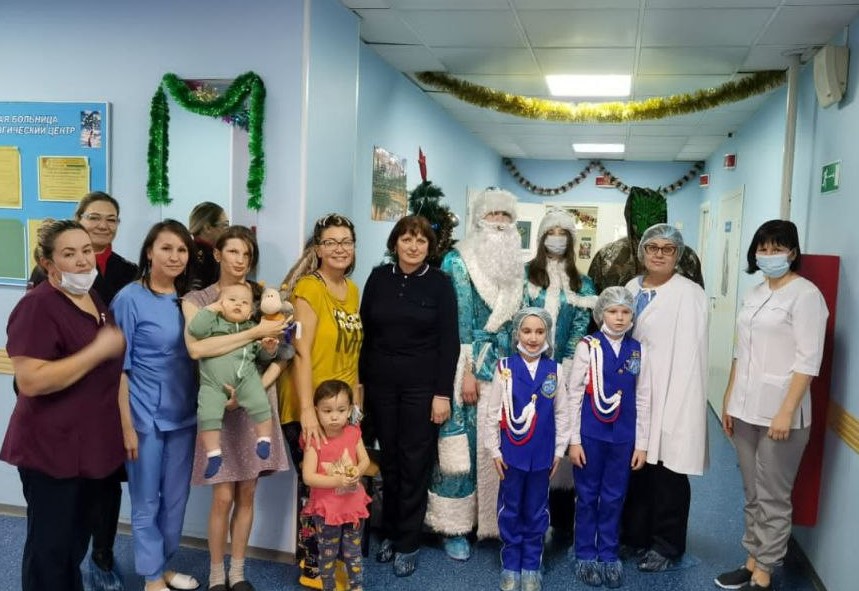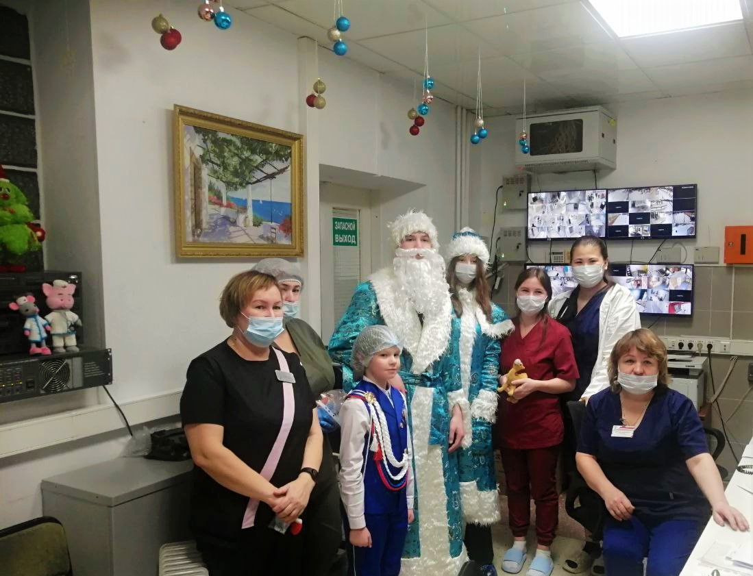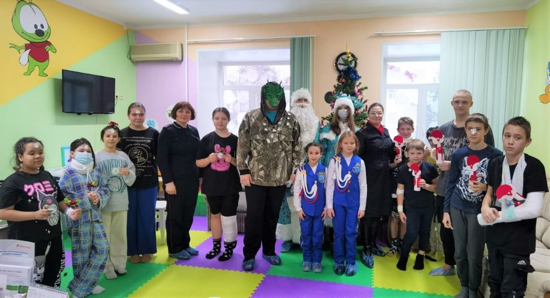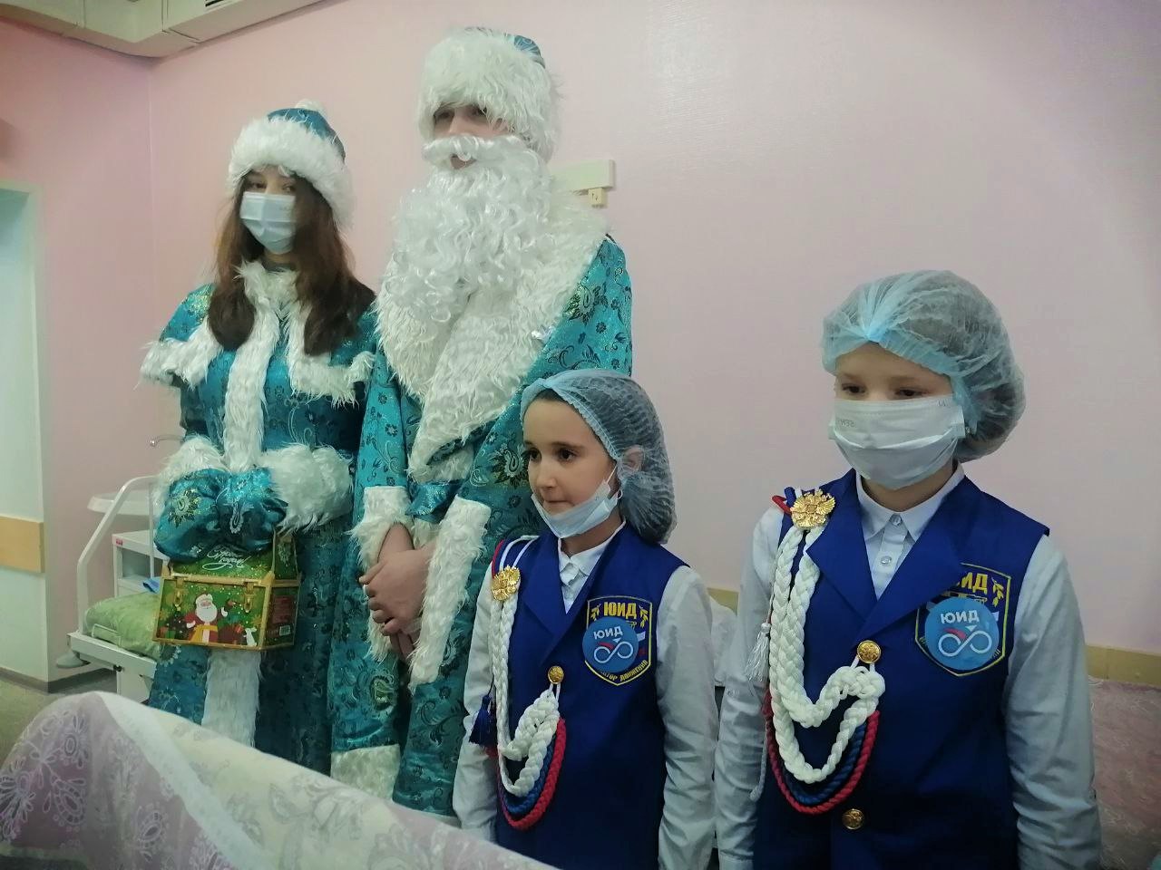 Сотрудники ГАИ и юные инспекторы дорожного движения в сопровождении Деда Мороза, Снегурочки и дракоши Тоши сегодня навестили наши детские ортопедо-травматологическое и нейрохирургическое отделения. К поздравлению пациентов Сургутской травмбольницы ребята готовились с начала декабря. ЮИДовцы из технологической школы сами мастерили новогодние сувениры, а старшеклассники школы №6 вживались в роль сказочных героев и продумывали конкурсы.
