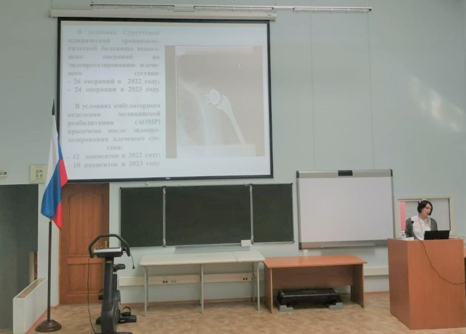 На отдельной площадке в течение двух дней обсуждали проблемы и перспективы развития физической реабилитации – очень важного и востребованного направления. Наш невролог и врач физической реабилитационной медицины Юлия Викторова дала оценку эффективности роботизированных тренажеров для восстановления навыков ходьбы, а врач ЛФК и врач-физиотерапевт Ирина Юденко рассказала о реабилитации пациентов после эндопротезирования плечевого сустава в амбулаторных условиях.