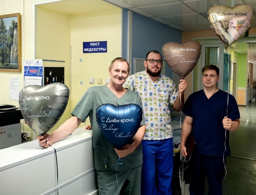 Сегодняшний рабочий день врачей детского отделения травматологии и ортопедии начался с приятного сюрприза. С Международным днем врача их поздравили пациенты, вручив каждому доктору именной воздушный шарик в форме сердца.