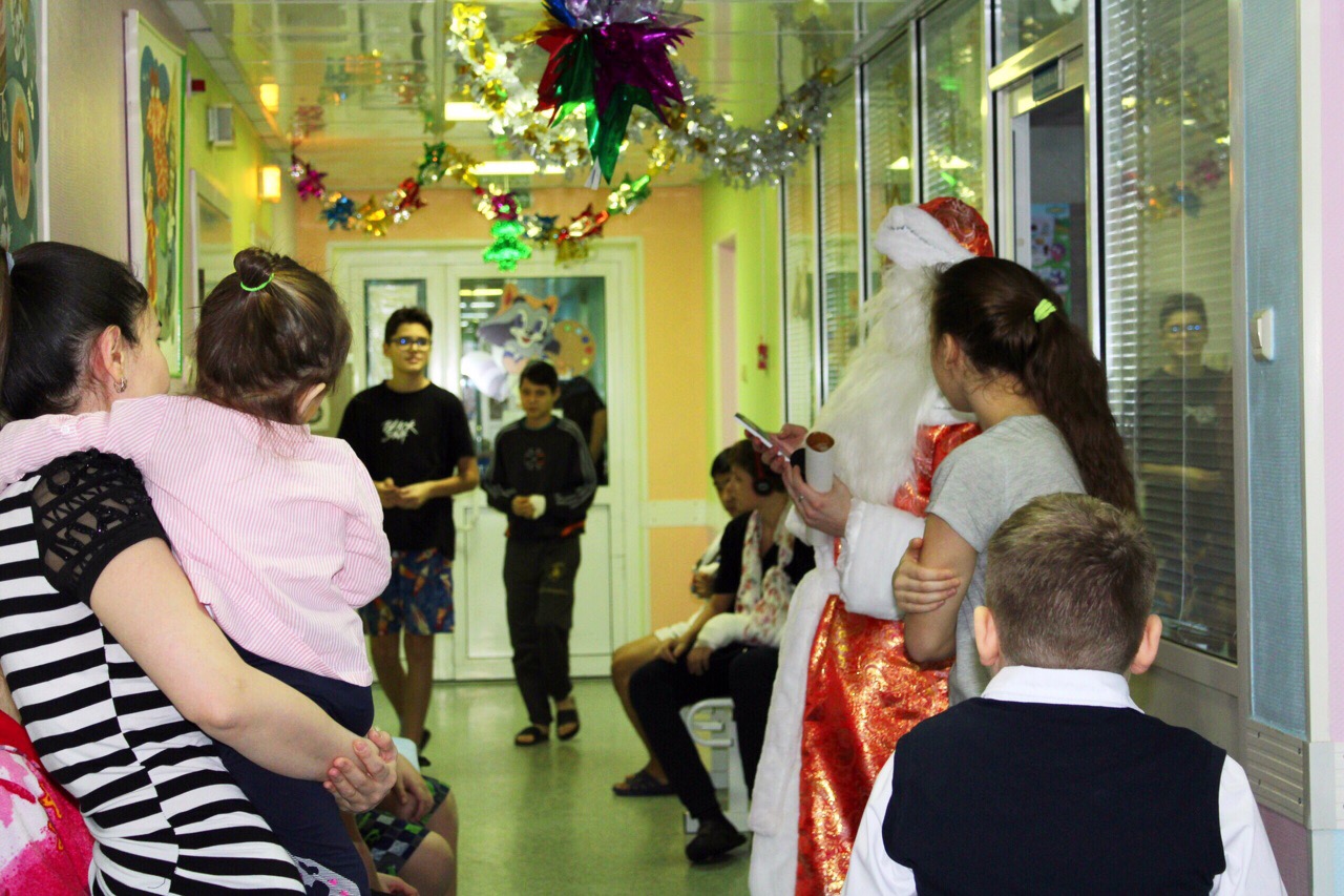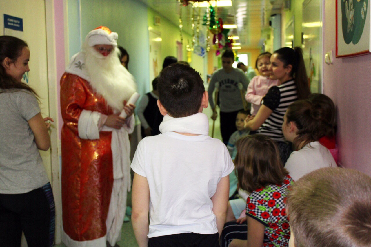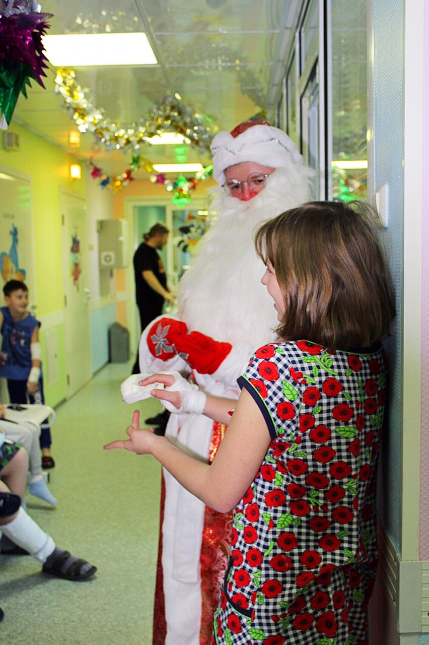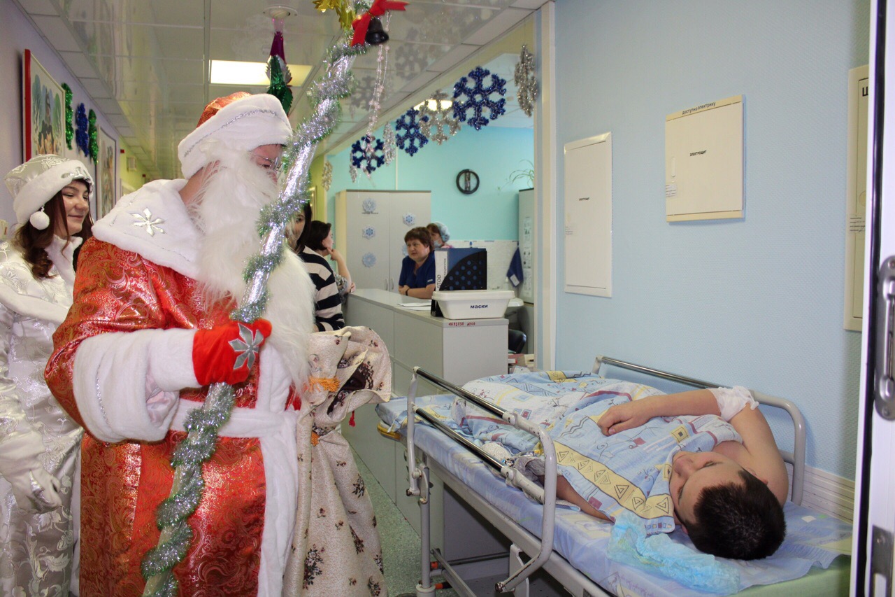 Сегодня в детских нейрохирургическом и травматолого-ортопедическом отделениях было шумно и весело. Пациенты рассказывали стихи, отгадывали загадки и пели песни! Доброму волшебнику помогали ученики второго класса городской общеобразовательной школы № 22 – Дима и Мирон. Школьники подарили маленьким пациентам «Варежки добра» с пожеланиями здоровья и удачи в новом году. Дед Мороз со Снегуркой навестили ребят в палатах и каждому вручили подарок.