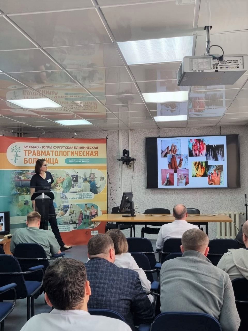 Наши врачи также представили свой опыт лечения переломов плечевой кости, повреждений таза, тяжелых переломов мелких сегментов конечностей и лучевой кости, травм позвоночника. К обсуждению актуальных вопросов присоединились специалисты из Ханты-Мансийска, Нижневартовска, Мегиона, Покачей, Радужного, Пыть-Яха и других муниципалитетов Югры.