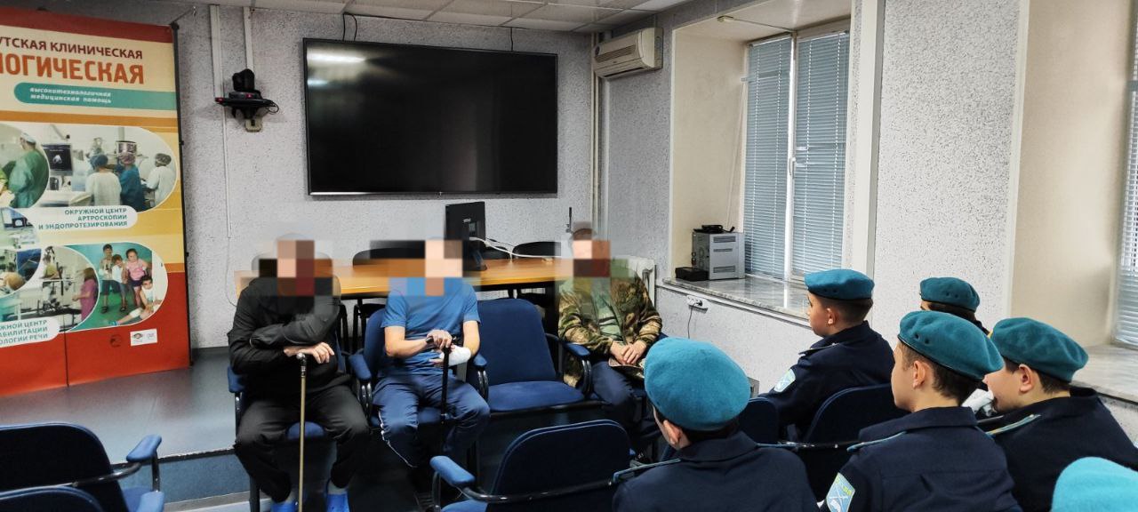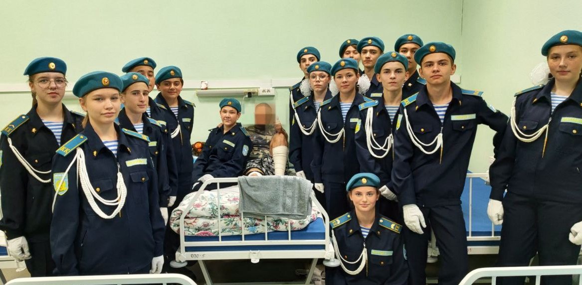 Раненых, которым пока противопоказано вставать с постели, кадеты навестили в палатах. Тех, кто самостоятельно передвигается и кому позволяет самочувствие, пригласили на урок мужества в актовый зал.
