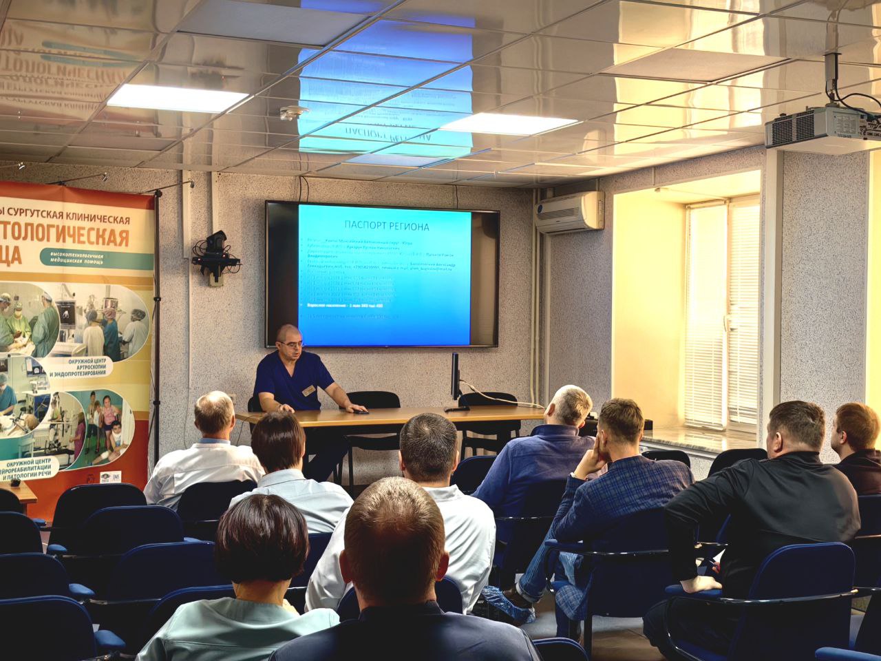 Заместитель главного врача по нейрохирургии Андрей Матвеев и главный внештатный специалист-нейрохирург Депздрава Югры, заведующий нейрохирургическим отделением №3 Александр Богословский познакомили московских коллег со структурой, мощностями и объёмом работы нейрохирургической службы округа.