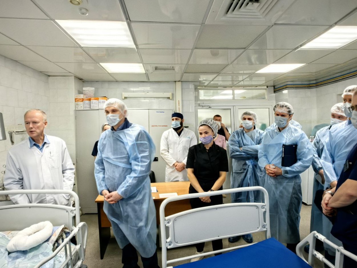 Специалисты НМИЦ им. Бурденко проследовали по маршруту пациента, начиная с приёмно-диагностического отделения. Во время экскурсии интересовались оснащением, хирургической активностью, работой действующего на базе нашей клиники Регионального сосудистого центра, взаимодействием с другими медучреждениями округа, организацией телемедицинского консультирования.