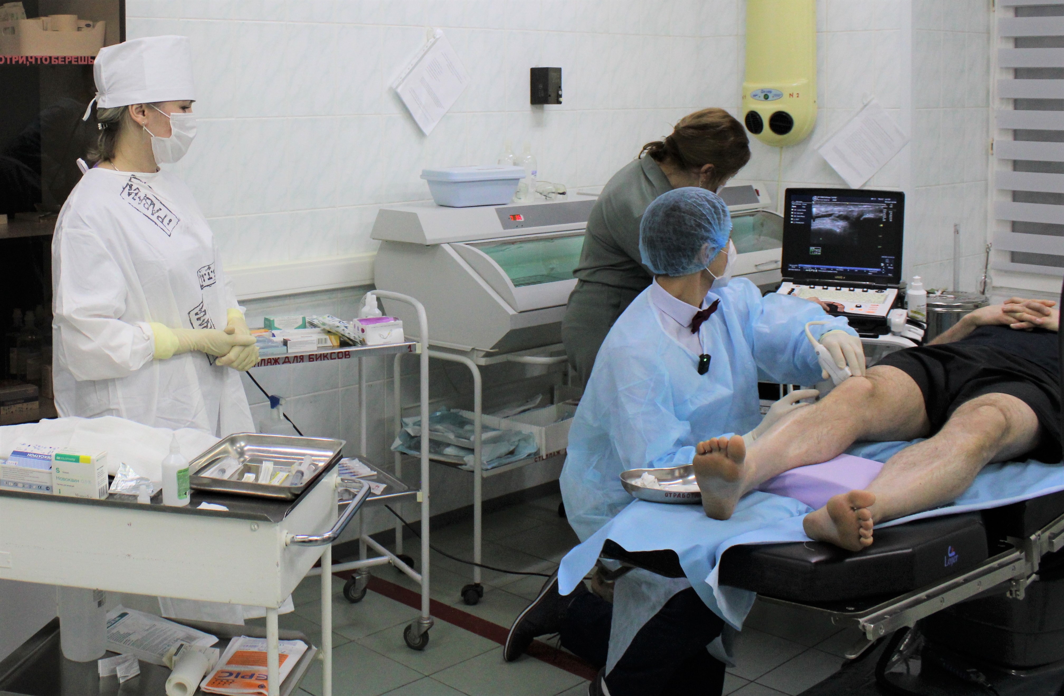 Специалист из Москвы поделился с нашими врачами последними новостями в этой сфере, познакомил с результатами различных исследований и существующим на рынке ассортиментом препаратов. А затем пригласил участников конференции на свой мастер-класс по локальной инъекционной терапии. Мы заранее отобрали двух пациентов с патологией коленного и плечевого суставов. У обоих - все медицинские показания для проведения такого вида лечения. Будем наблюдать их в динамике, оценим эффект от введённых препаратов и его продолжительность.