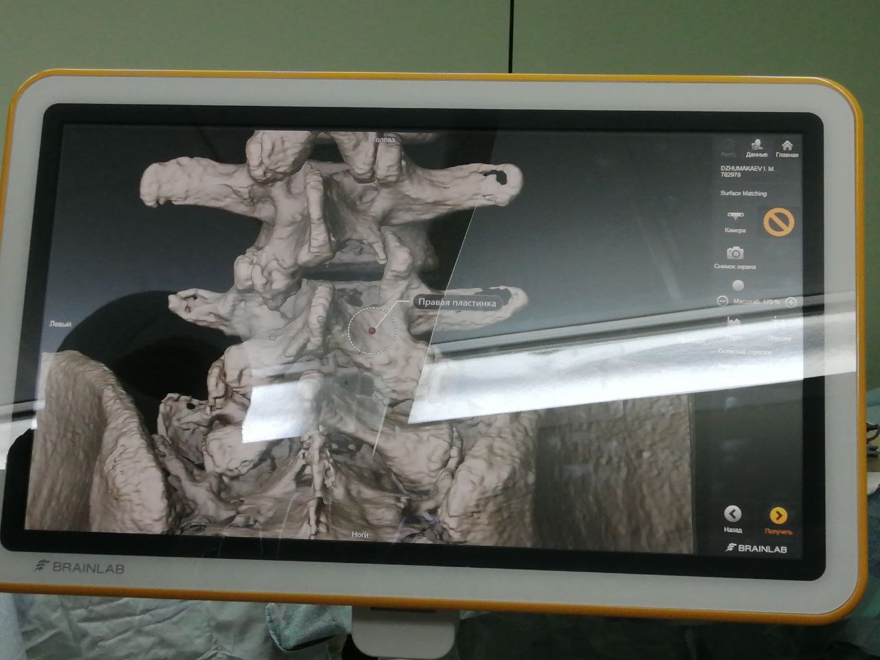 Уже на следующий день после поступления в больницу нейронавигационная система была задействована в работе. Первую операцию с её помощью выполнили 40-летнему мужчине. Его проблема - нестабильность поясничного отдела позвоночника. До этого он перенёс серию нейрохирургическх вмешательств и на очередном этапе лечения нуждался в установке металлоконструкции.