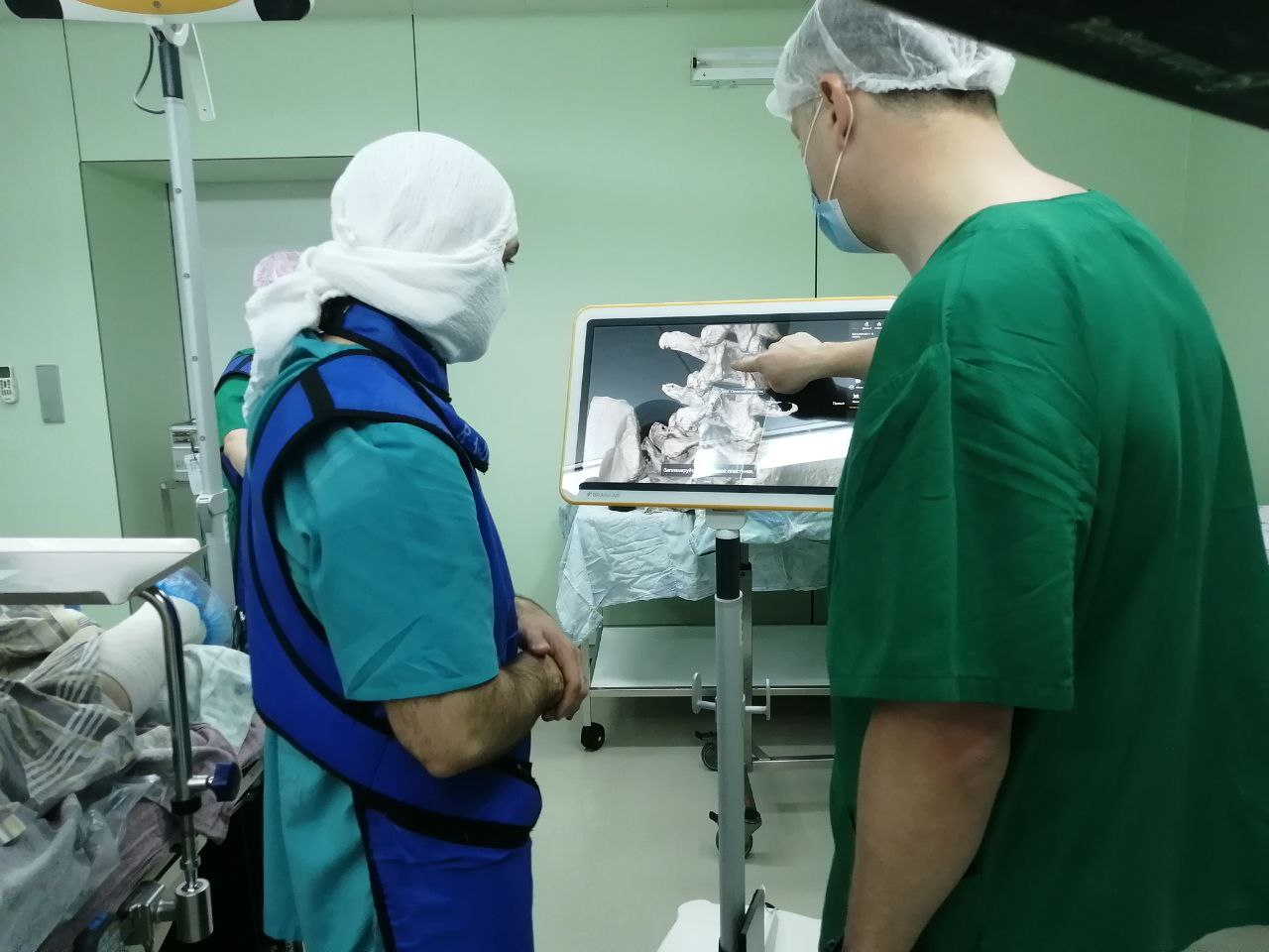 -Например, операция на позвоночнике – это всегда высокий риск повредить спинной мозг, нерв или сосуд. Как правило, у наших пациентов в результате заболевания или травмы уже изменена анатомия позвоночника и классические анатомические ориентиры смещены. Чтобы не задеть важные структуры, нейрохирургу нужно их видеть. Ранее основным методом визуализации был рентген. Во время операции врач мог сделать от 80 до 300 снимков, контролируя каждое своё действие. С появлением нейронавигации рентген стали использовать в меньших объёмах. С новым же оборудованием нам достаточно снимка лишь в начале и в конце операции. Всю свою работу мы детально видим на большом мониторе, куда выводится 3D-изображение в высоком разрешении, - объясняет заведующий нейрохирургическим отделением экстренной помощи Роман Касич.