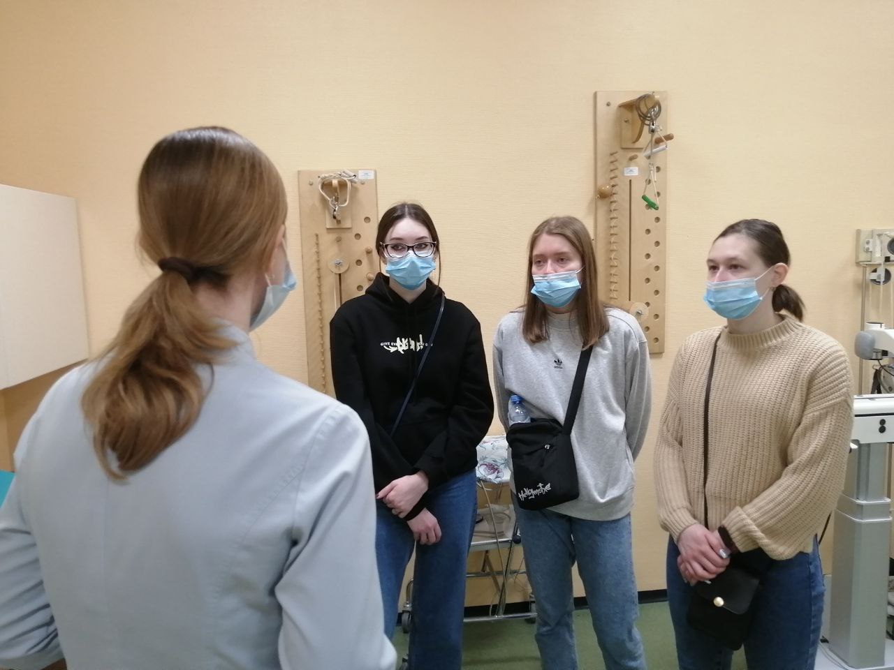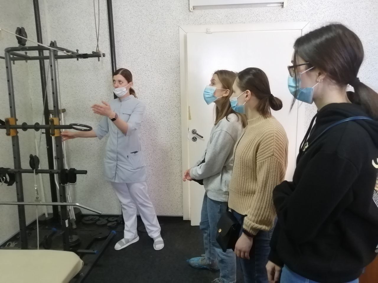 Студенты отмечают, что образовательная программа в ВУЗе в основном акцентирована на нужды детей с ограниченными возможностями здоровья. Однако они понимают, что взрослое население нуждается в их помощи не меньше. Поэтому приняли приглашения от руководства клиники поближе познакомиться с этим направлением работы в условиях медицинского учреждения. Побывали во всех трёх отделениях реабилитации. Увидели, как заново ставят на ноги и учат ходить тяжелобольных пациентов, посетили индивидуальные и групповые занятия лечебной физкультуры, а также тренировки на современных роботизированных и механизированных тренажерах с биологически обратной связью. Были приятно удивлены наличием в больнице бассейна, оснащенного техническими устройствами для погружения и подъёма пациентов с поражением спинного мозга. Да и вообще, признались, что не ожидали увидеть такую крупную, развитую и оснащённую службу медицинской реабилитации.