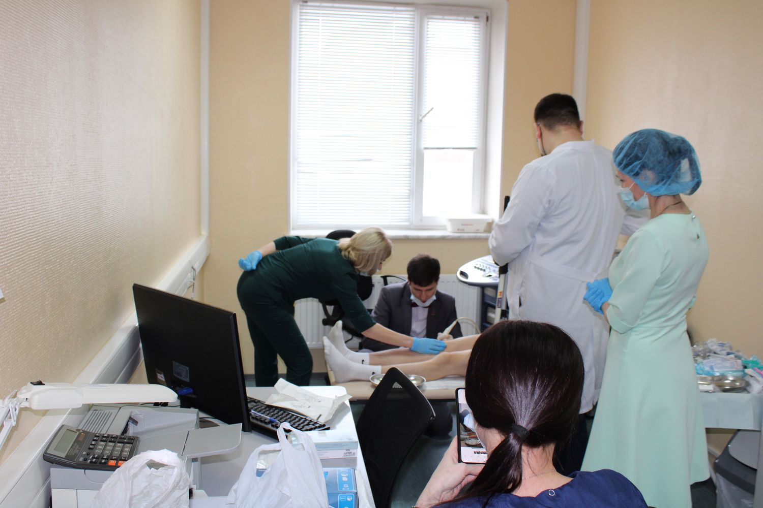 Основное же внимание участников конференции было приковано к инъекционной терапии. Сегодня производители препаратов, содержащих гиалуроновую кислоту, громко заявляют об их стойком целебном эффекте. Представленный на рынке ассортимент довольно широк. Ориентироваться в нём учил приглашенный из Москвы травматолог-ортопед, хирург, флеболог, врач УЗИ-диагностики Ян Колесников. Совместно разбирали, кому, когда и в какой дозировке показаны эти внутрисуставные инъекции. А вот как их делать, столичный специалист продемонстрировал наглядно во время мастер-класса. На участие в нём согласились два наших пациента 18-ти и 57-ми лет с непростыми травмами колена и плеча.