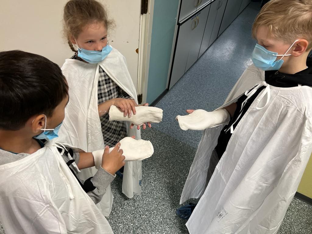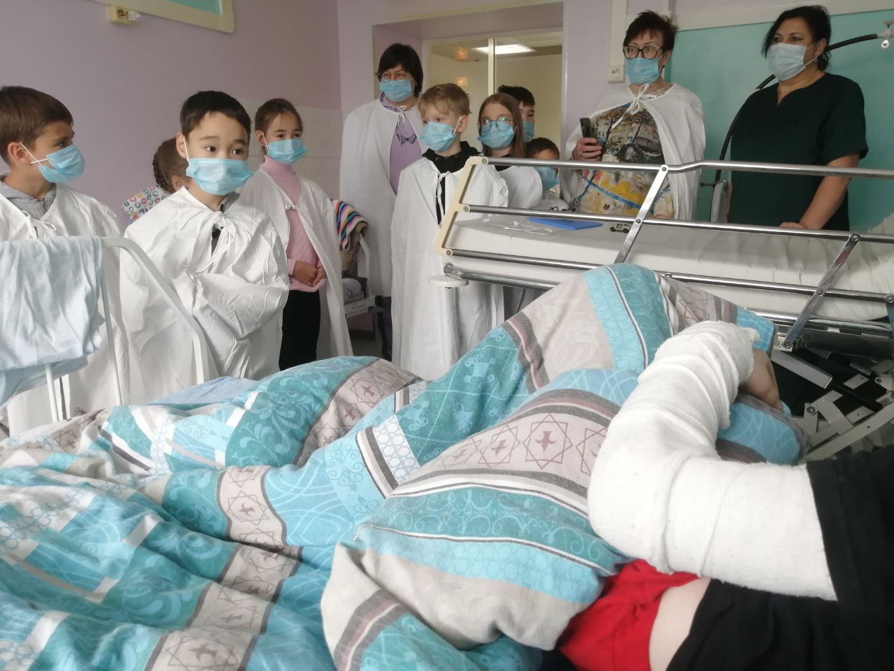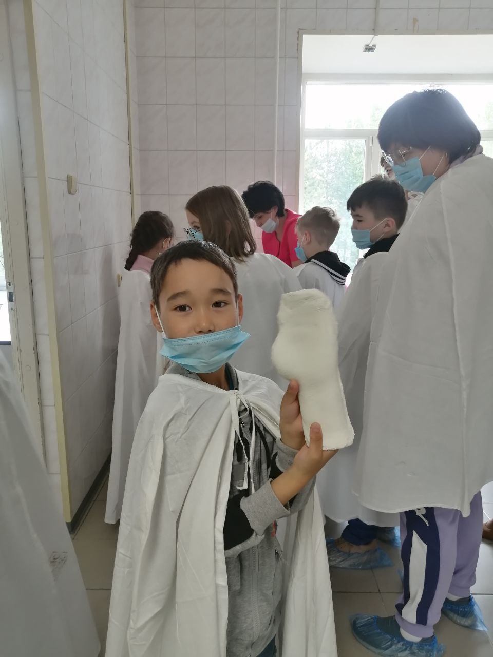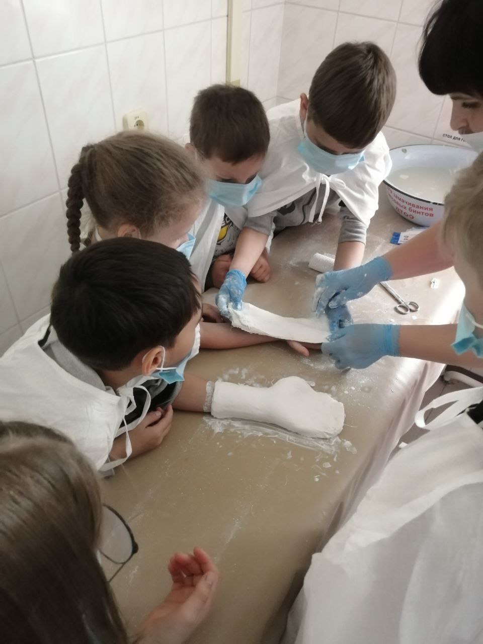 На каникулах ребята решили познакомиться с работой врачей и среднего медперсонала Сургутской травмбольницы. Мы всегда рады визитам детворы и, по многолетнему опыту сотрудничества со школами и учреждениями дополнительного образования, отлично знаем, чем можно заинтересовать разные возрастные группы. Например, младшеклассникам всё нужно пробовать делать своими руками. Поэтому каждый раз вовлекаем их в какой-нибудь медицинский процесс. Сегодня под руководством медсестры детского отделения травматологии и ортопедии Анастасии Большаковой учились правильно фиксировать место перелома.