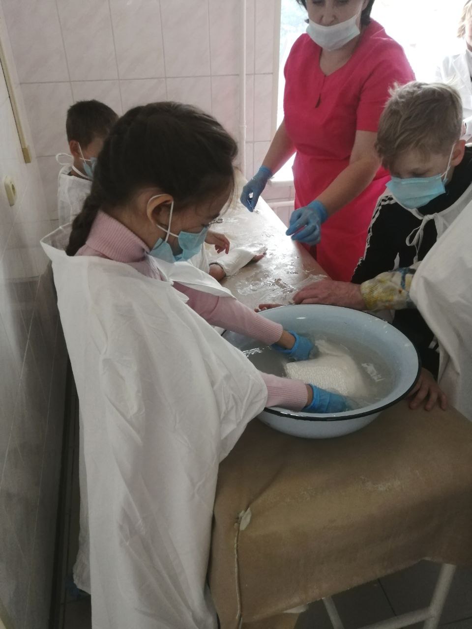 Лес рук, и все – в очереди на гипсование. Во время экскурсии наши юные гости осваивали технику наложения затвердевающих повязок. В роли гипсовых техников и пациентов – воспитанники Центра социальной поддержки «РУБУС».