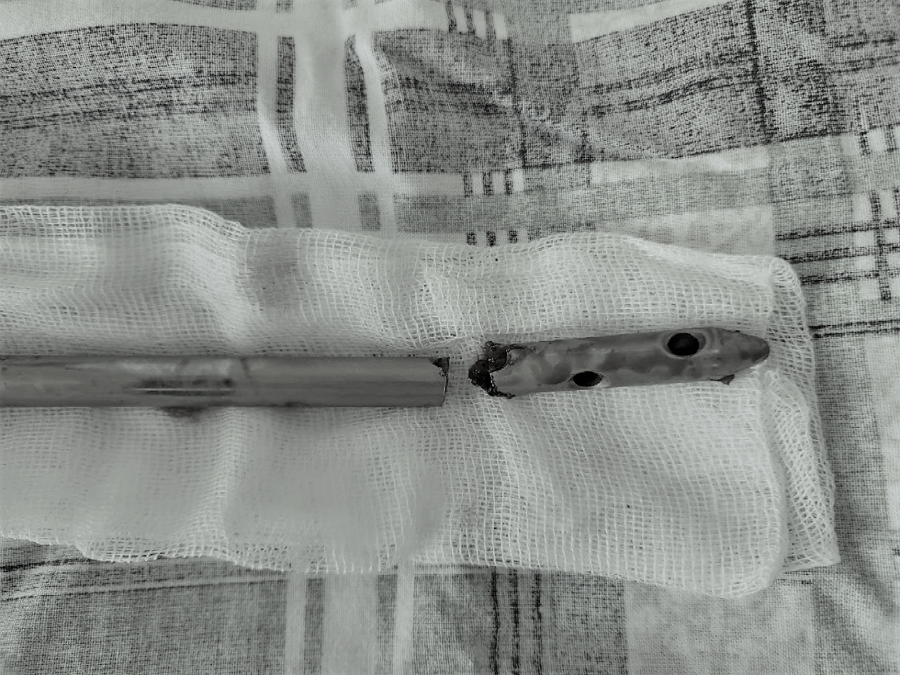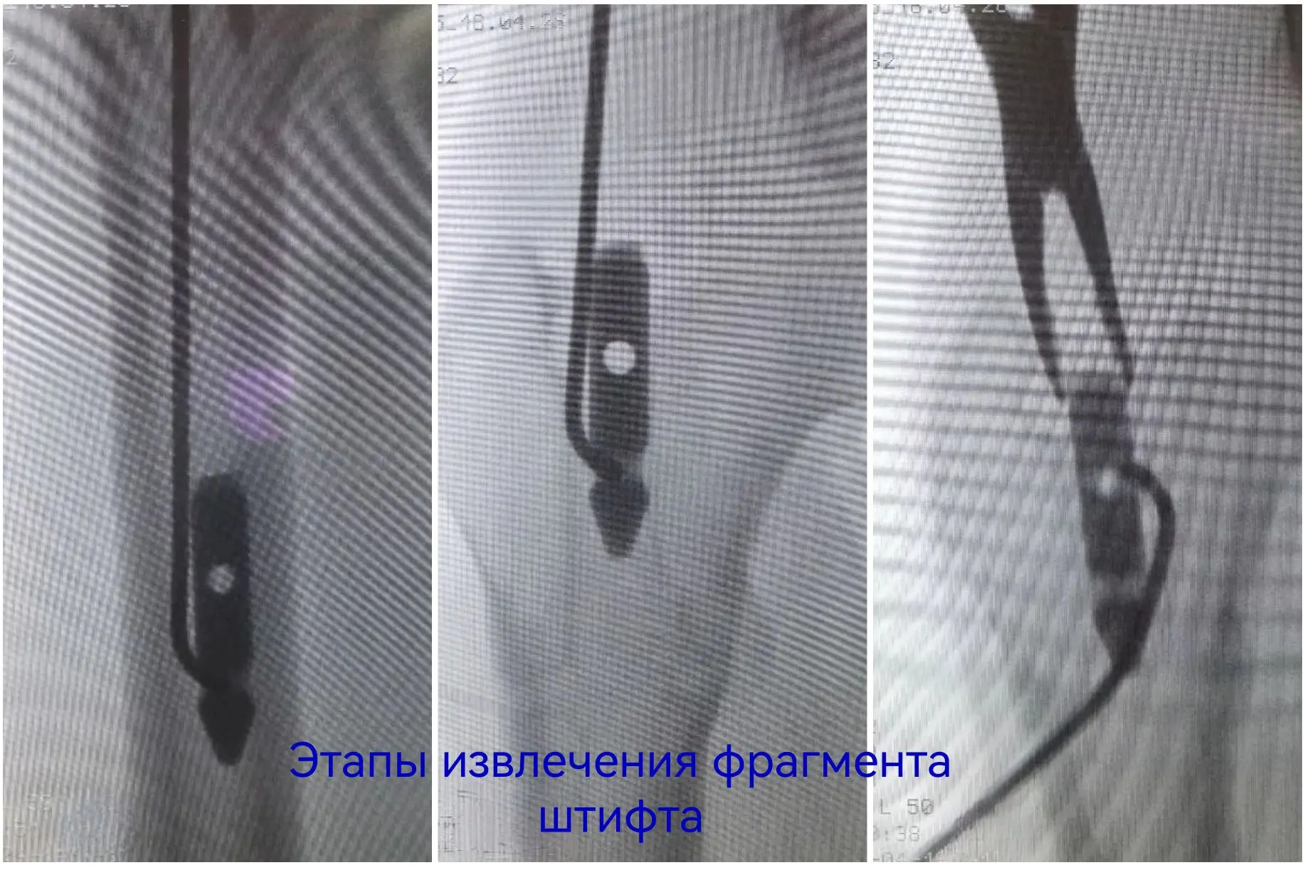Врачам нужно было найти новое, более подходящее решение, при этом избежать травматичного открытого доступа и обойтись без больших разрезов. Задачу усложнял сломанный внутри кости штифт. Специального серийного устройства для его удаления малоинвазивным способом не существует. Чтобы пройти 40 сантиметров по костномозговому каналу, захватить и извлечь фиксатор, наши специалисты создали свою систему на базе имеющего набора проводников и экстракторов. Тщательное предоперационное планирование принесло желаемый результат в ходе вмешательства.