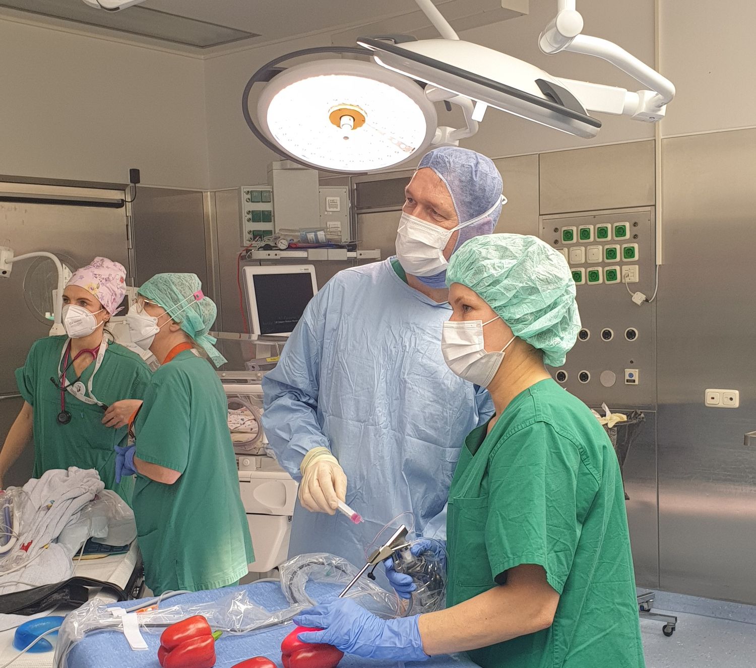 В день приезда российских нейрохирургов в Charite как раз поступил ребёнок с ВЖК, поэтому внедрённую здесь методику оперативного лечения удалось продемонстрировать наглядно. Позже Ульрих Томале пригласил гостей на мастер-класс. Каждое действие разбирали и отрабатывали на симуляционных моделях. Сначала в нее закачивали специальную смесь, имитирующую кровяные сгустки, а затем с помощью эндоскопа сгустки удаляли.