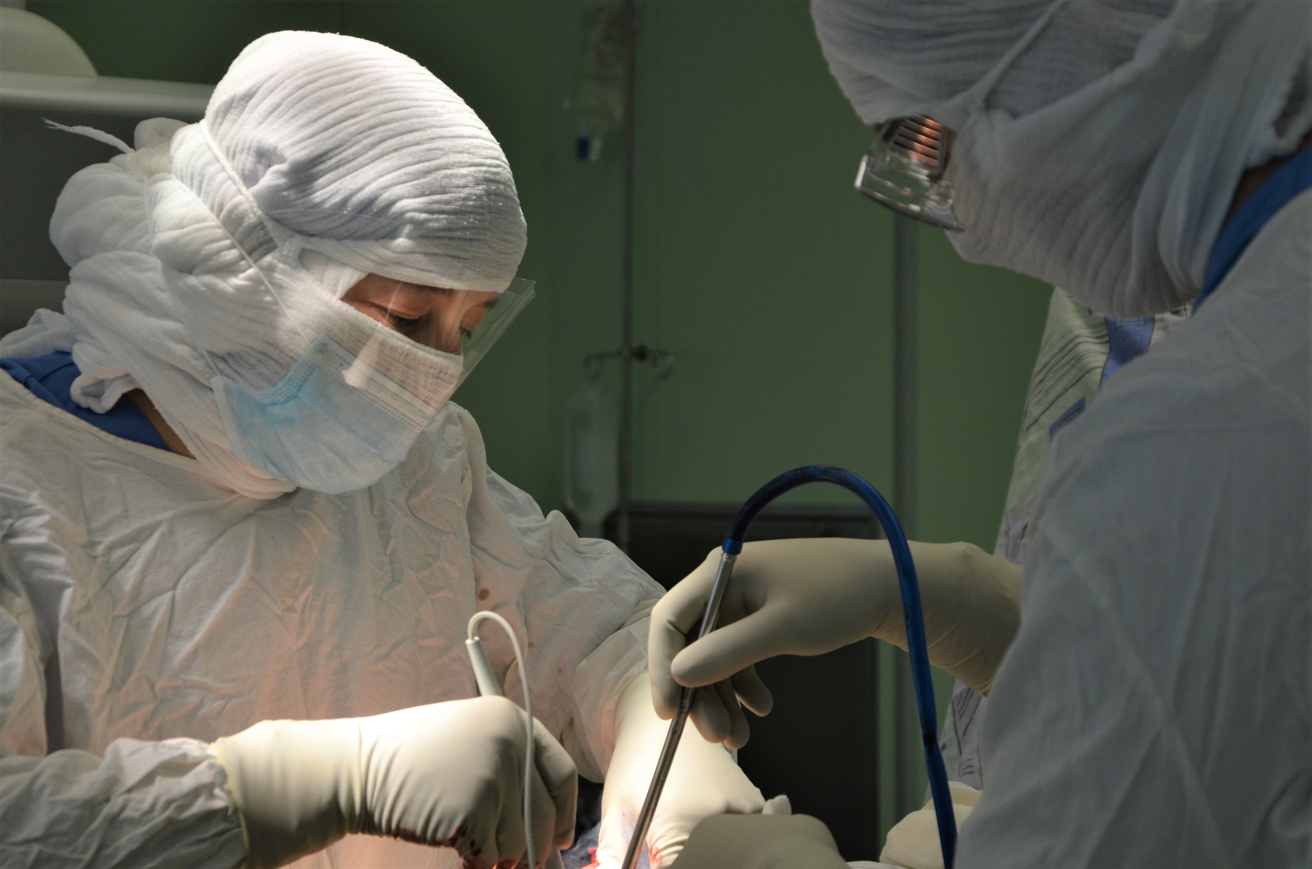 Отметим, что врачи используют специальные средства защиты, предназначенные для работы в операционной: перчатки, защитные экран, очки и т.д.