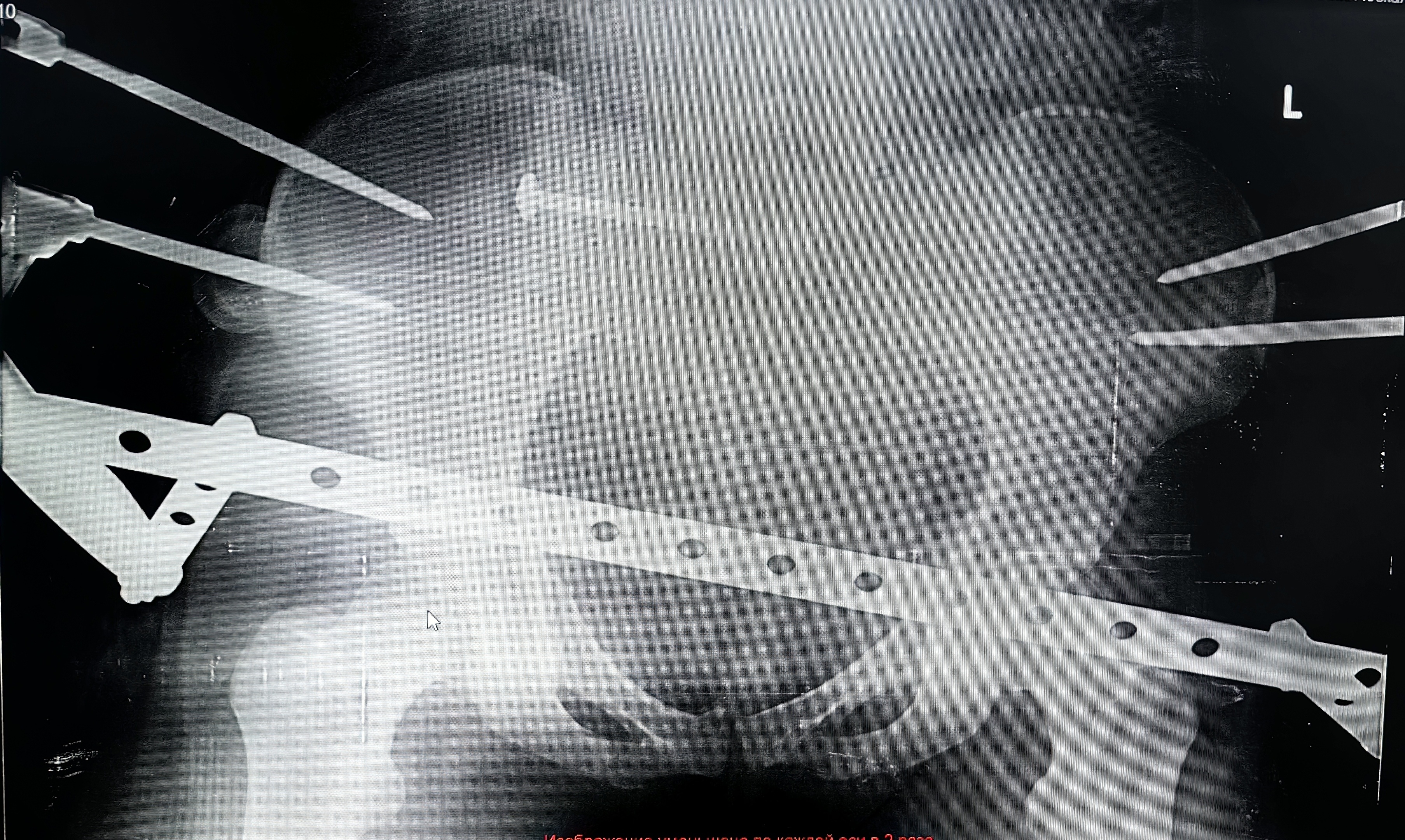 Основные риски были связаны с установкой илеосакрального блокирующего винта в области крестца, где проходят нервы, спинной мозг и множество сосудов. Критически важно не задеть эти структуры, поэтому операция требует от врача соответствующего опыта и высокого уровня мастерства.